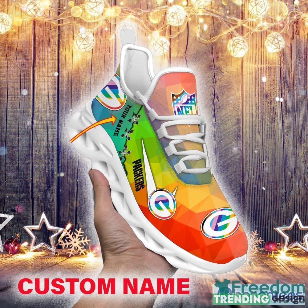 But what sets these sneakers apart is the option to customize them with your very own name. Imagine having your name boldly displayed alongside the legendary Packers logo, creating a one-of-a-kind pair of shoes that is exclusively yours. Whether you want to showcase your own name or surprise a fellow Packers fanatic with a personalized gift, these sneakers are the perfect choice.