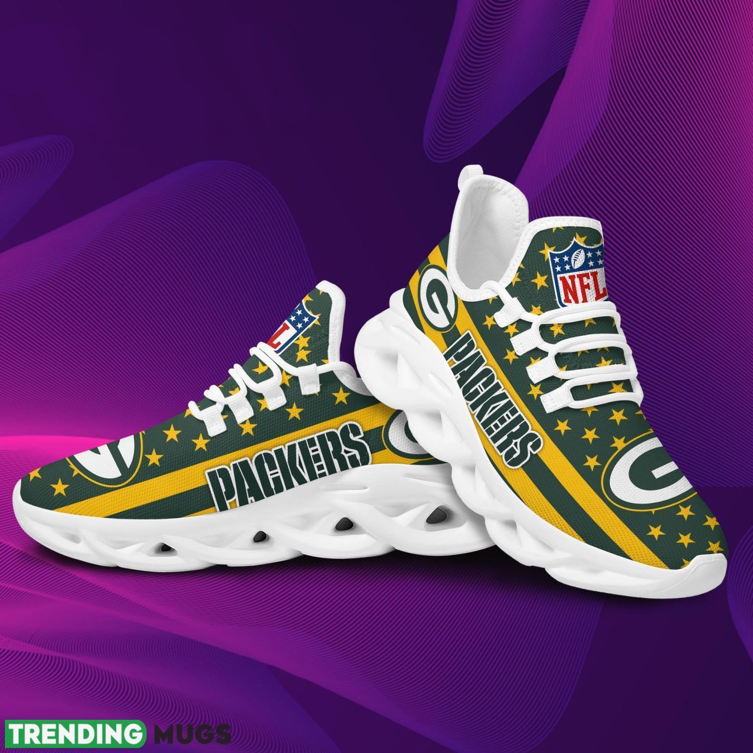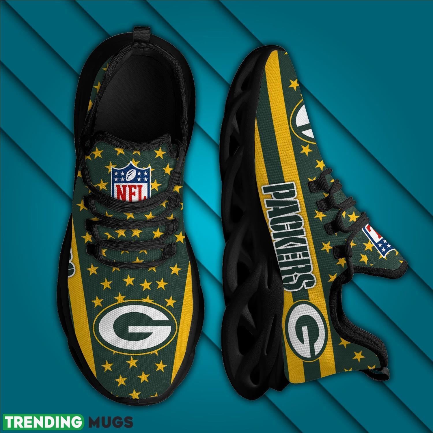 This Green Bay Packers Max Soul Sneakers Comfortable Men Women Shoes All Star Printed is a breathable, lightweight, and comfortable casual outdoor shoe that has a unique design. It is made of a mesh fabric which makes it sweat absorbent and breathable, while the rubber bottom ensures traction, comfort, and durability. It is available in two colors: black or white sole. There are two styles of shoelace holes so you can choose your preference.