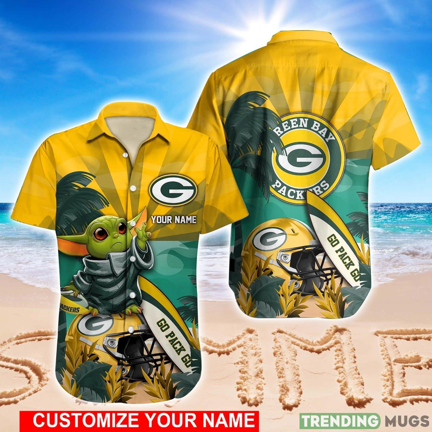 Green Bay Packers NFL Baby Yoda Hawaiian shirt Custom Name Special Summer Gift For Fans Details: