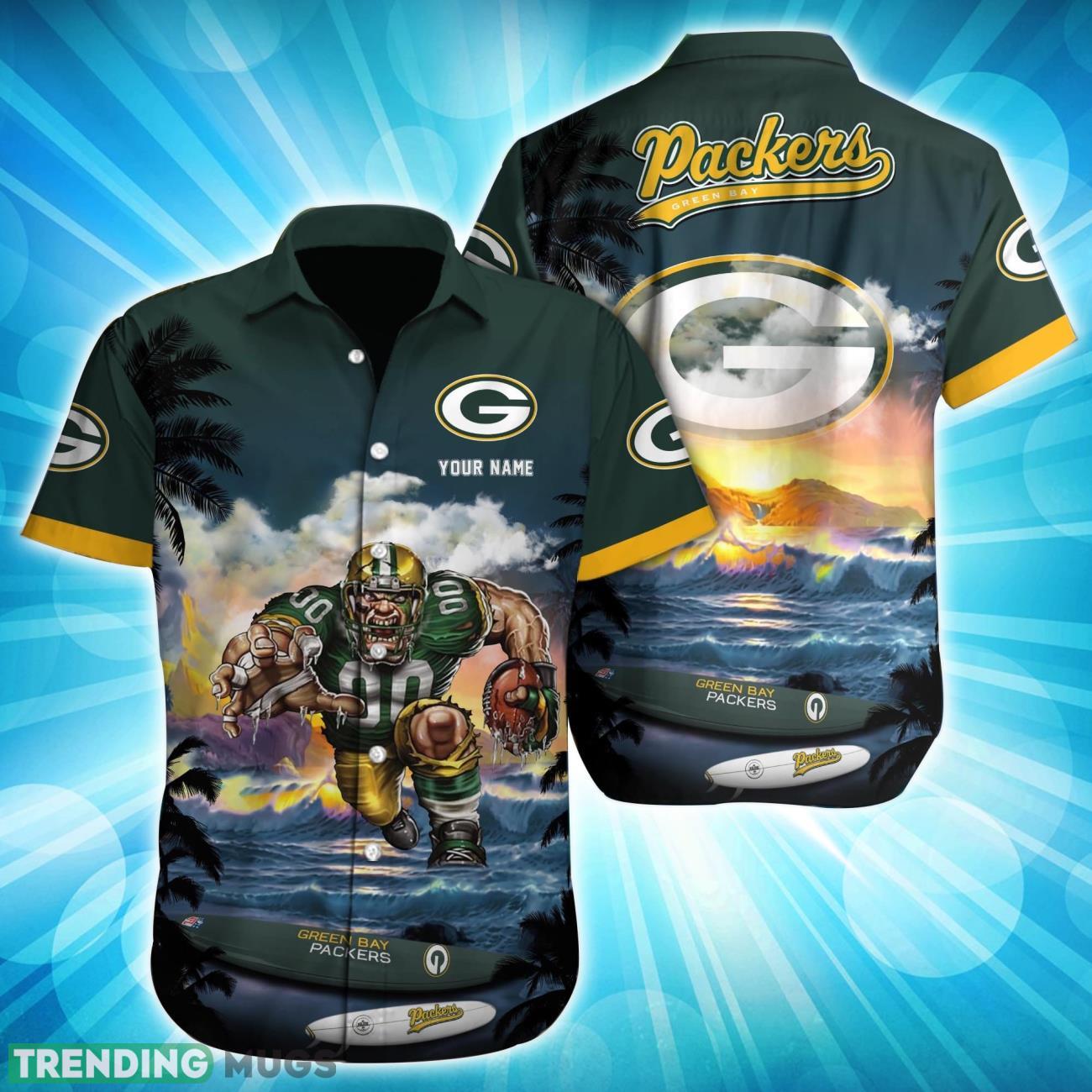 Made with high-quality materials, this Hawaiian shirt features a vibrant green and yellow design that pays homage to the legendary Green Bay Packers. What sets this shirt apart is the option to customize it with your own name, making it a truly unique and personalized piece of fan gear.