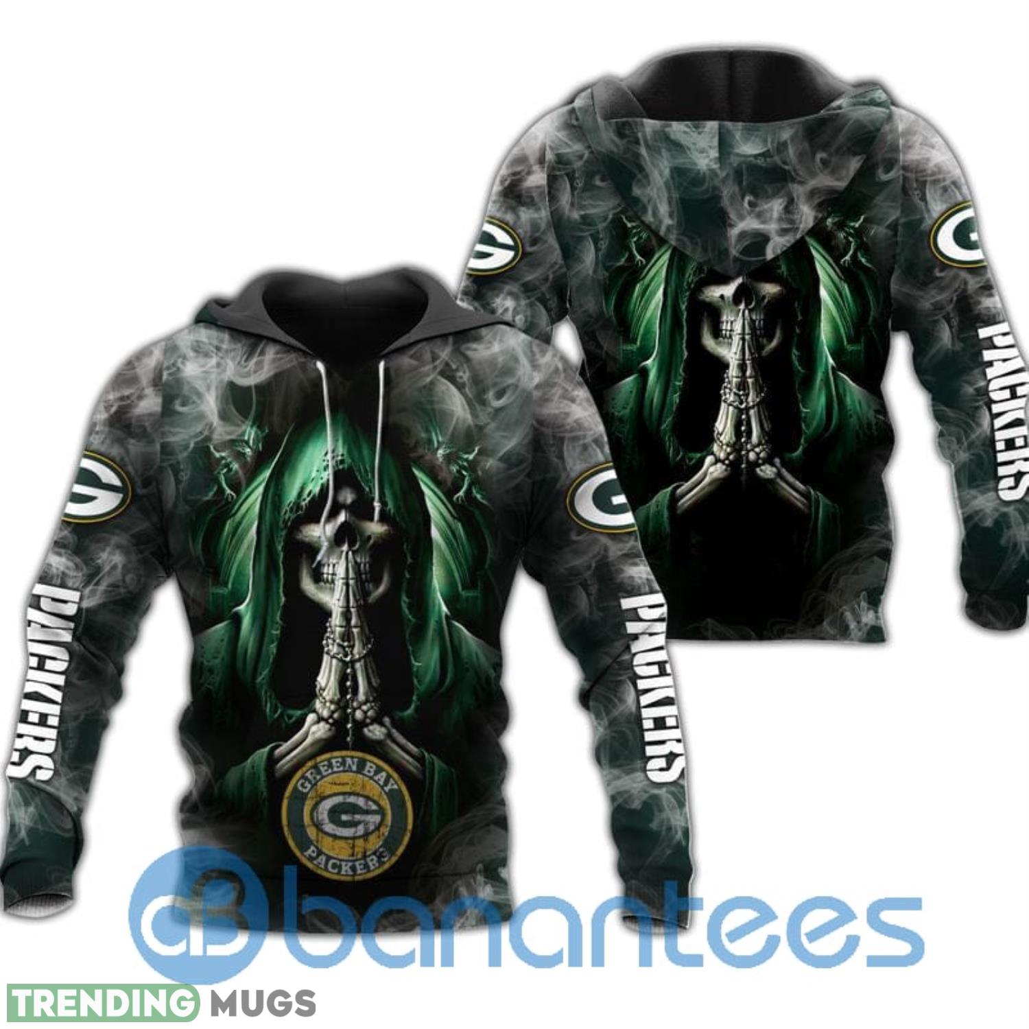 Green Bay Packers Skull Smoke All Over Printed 3D Hoodie Zip Hoodie Information
