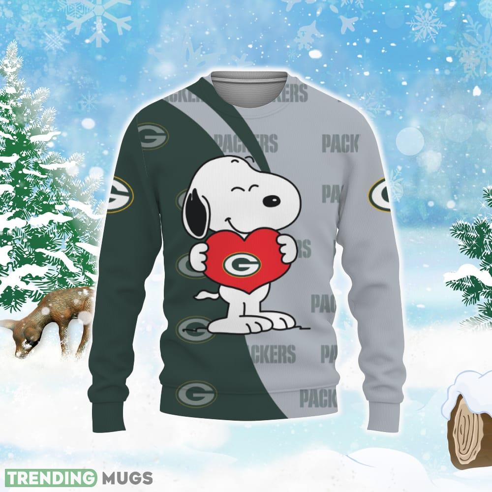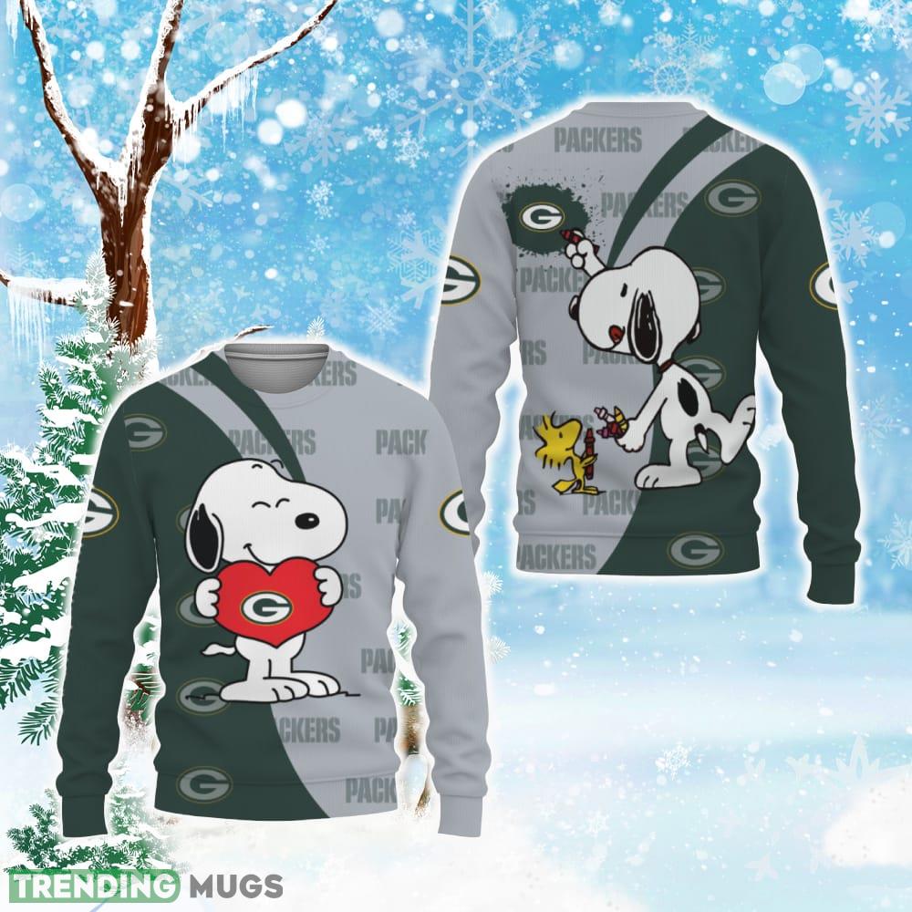 Green Bay Packers Snoopy Cute Heart American Sports Team Ugly Xmas AOP Sweater 3D Sweater