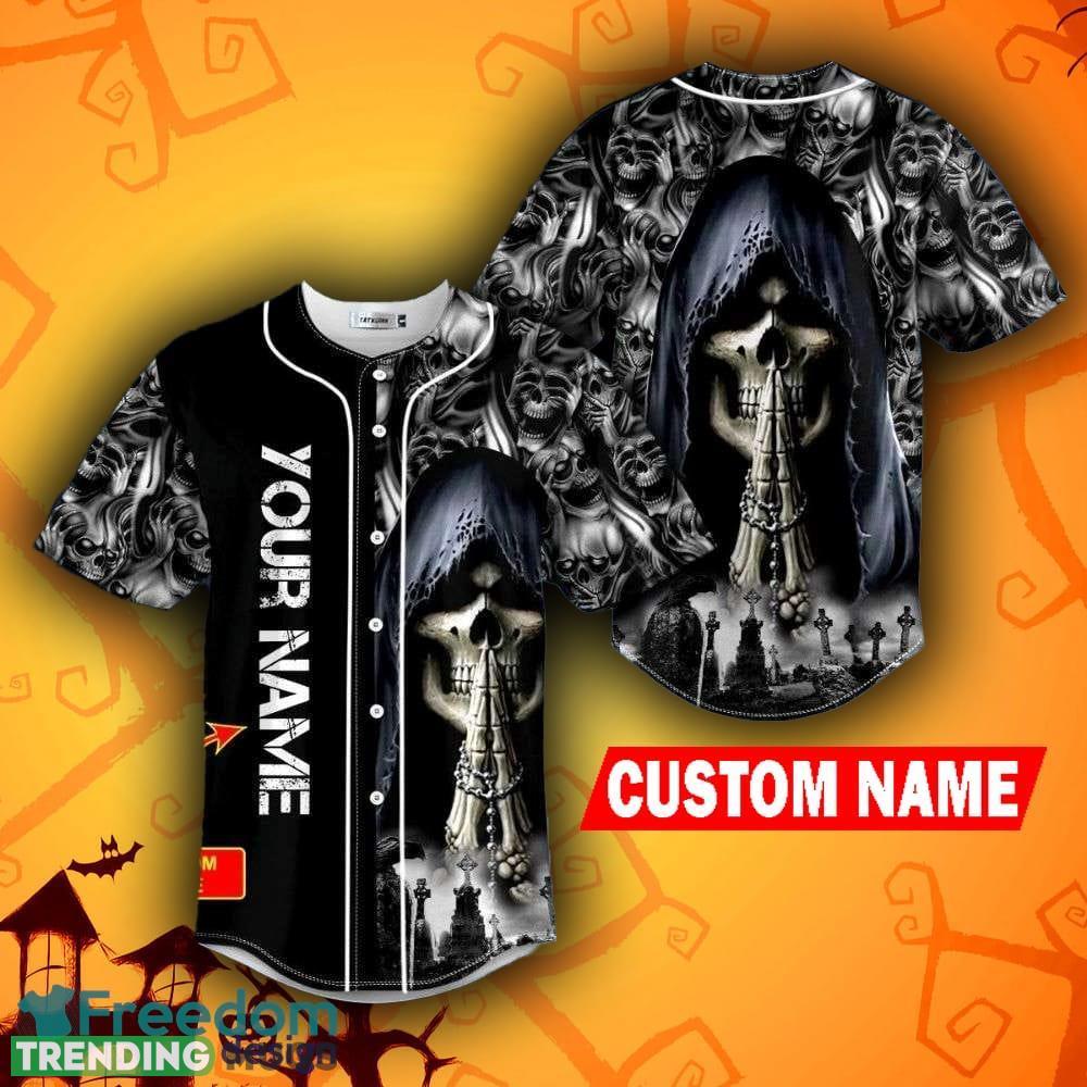 Grim Reaper Praying Halloween Skull Holiday Baseball Jersey Shirt Custom Name Information: