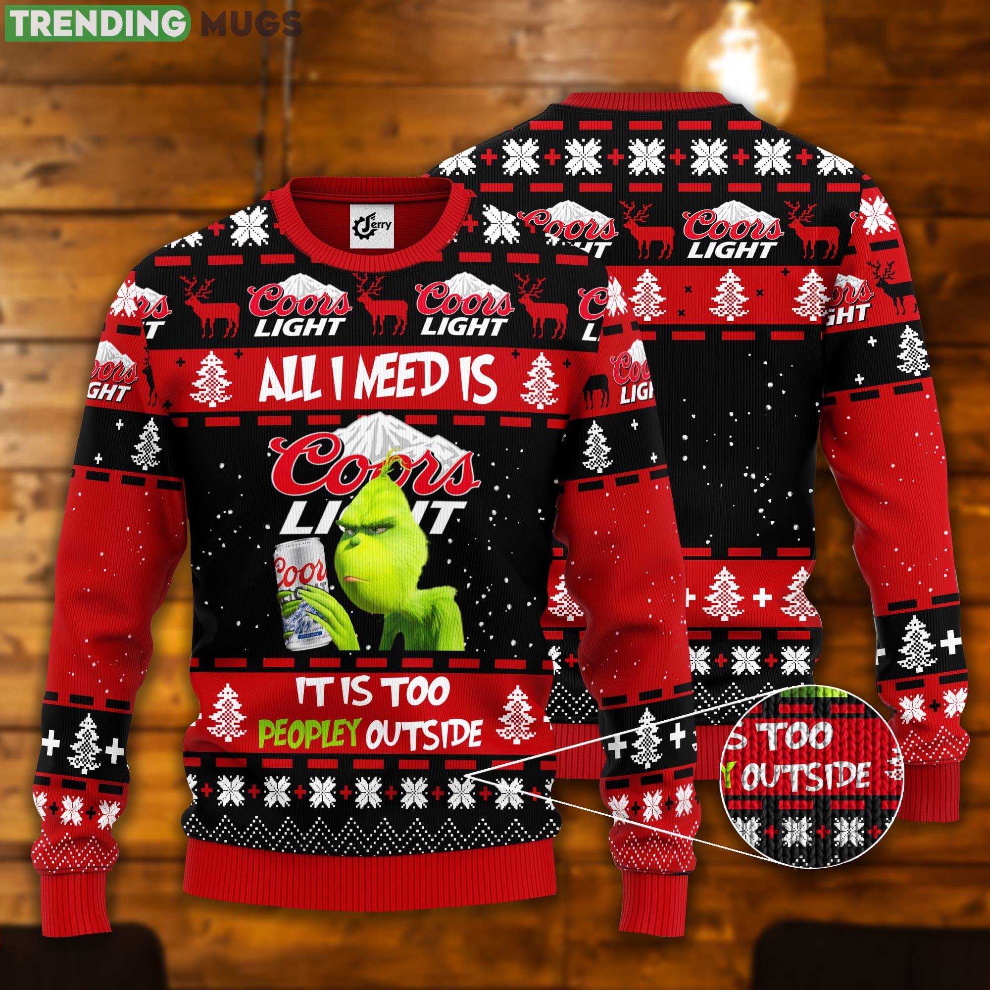 Grinch All I Need Is Coors Light It Is Too Peopley Outside Ugly Christmas Sweater Informations: