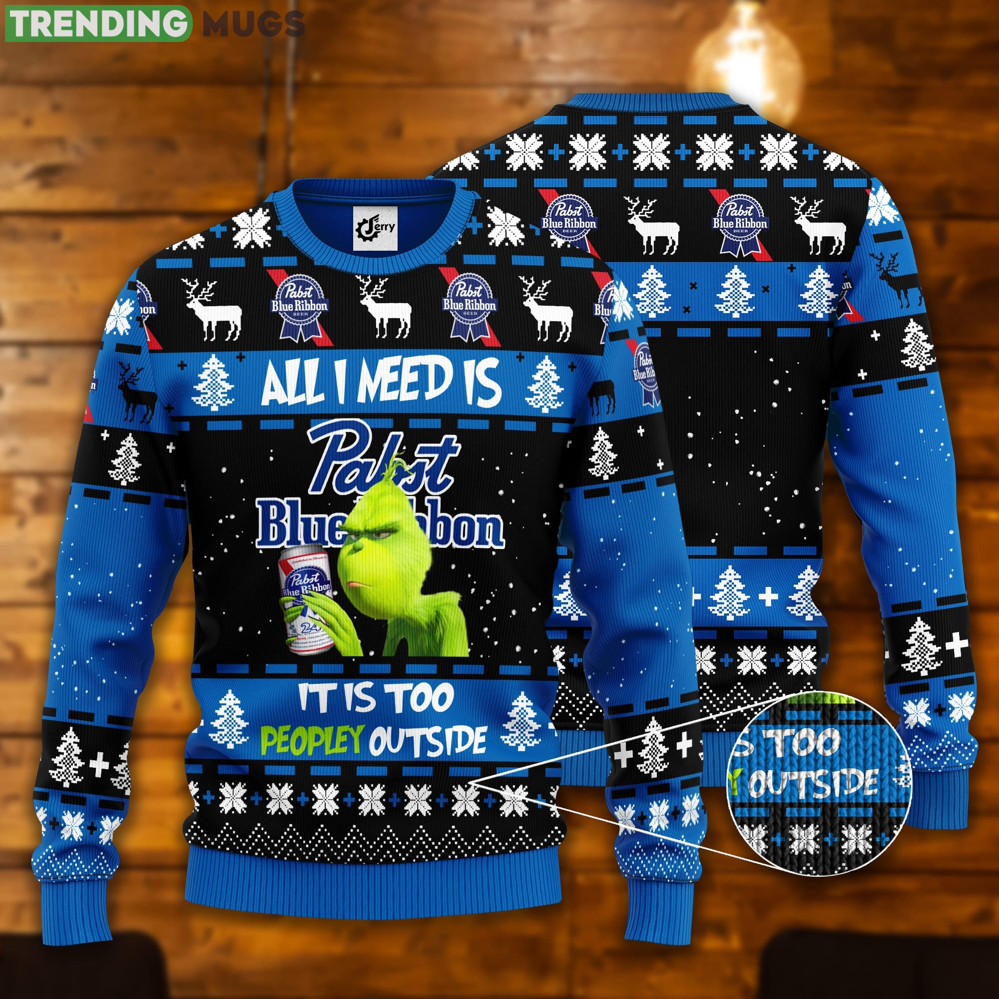 Grinch All I Need Is Pabst Blue Ribbon It Is Too Peopley Outside Ugly Christmas Sweater Informations: