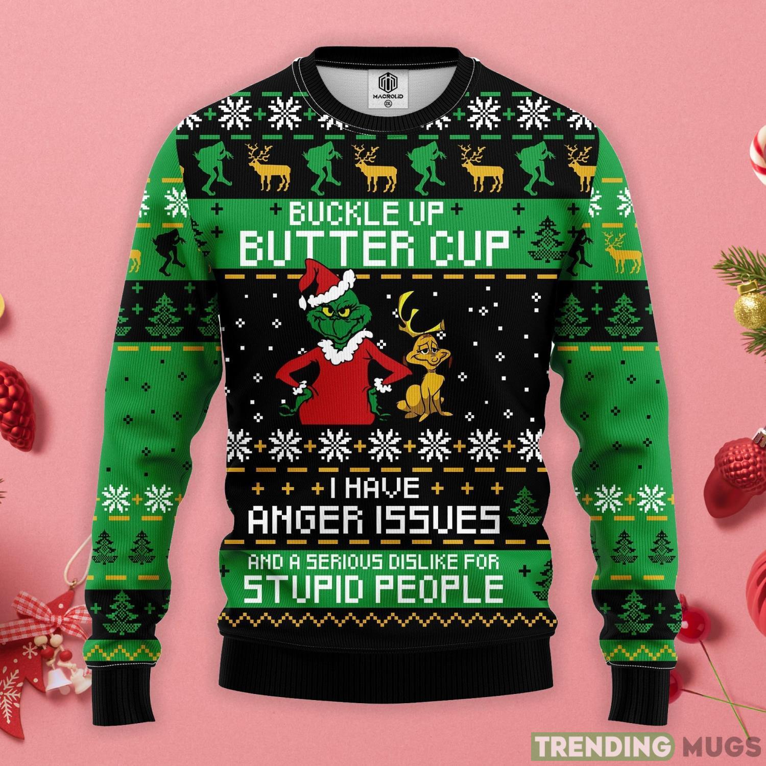Grinch Buckle Up Butter Cup Stupid People Ugly Christmas Sweater Informations: