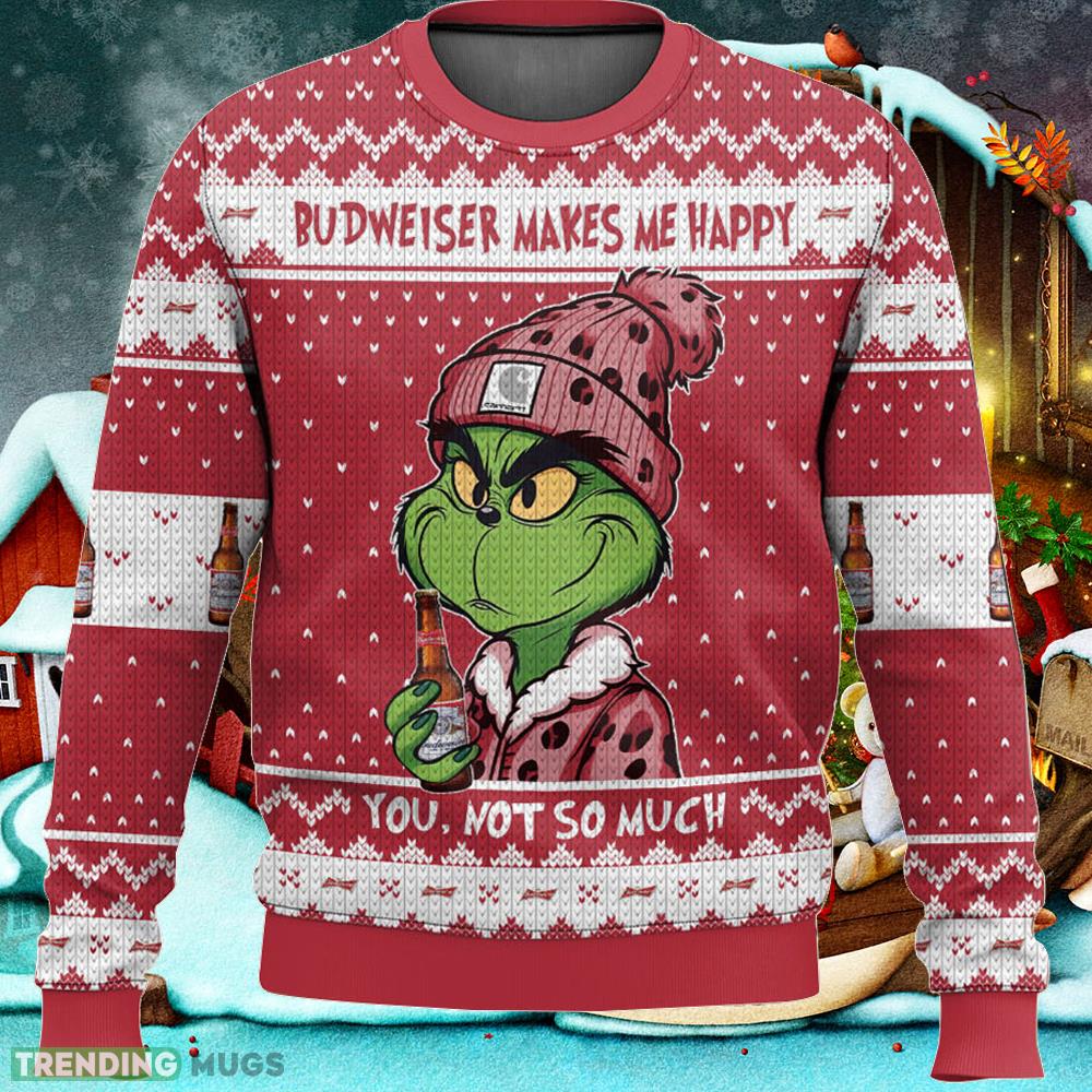 Grinch Budweiser Makes Me Happy Ugly Sweater Christmas Gift For Men And Women Holidays Informations: