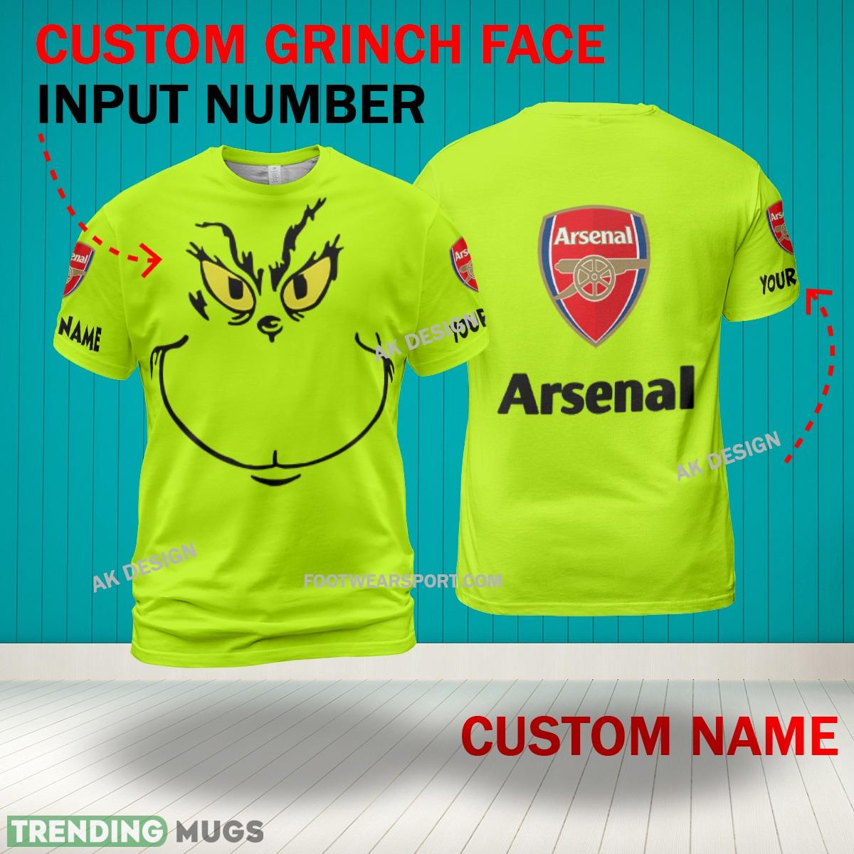 Some of the Grinch Face Arsenal 3D Hoodie, Zip Hoodie, Sweater Green AOP Custom Number And Name photos