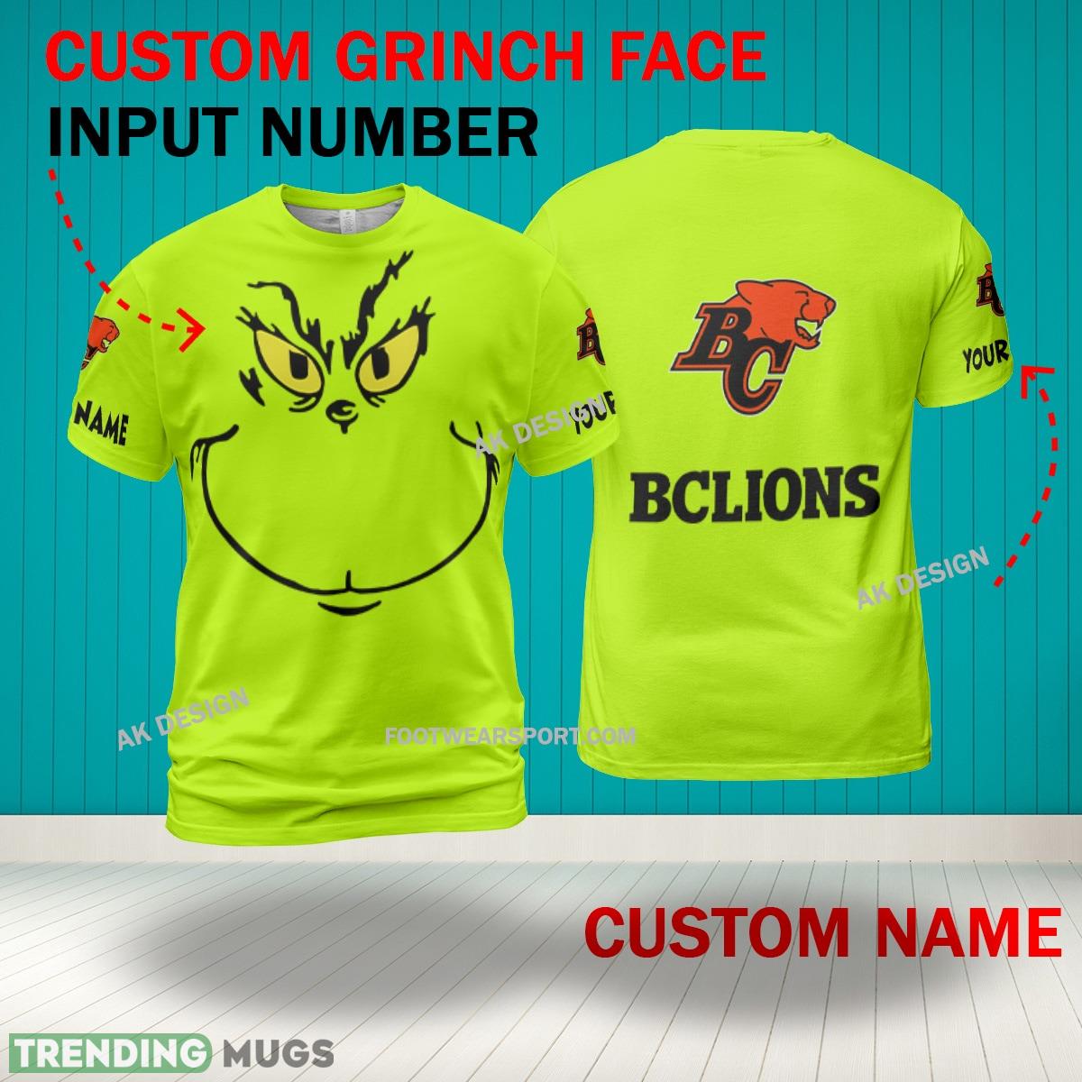 Grinch Face BC Lions 3D Hoodie, Zip Hoodie, Sweater Green AOP Custom Number And Name Information