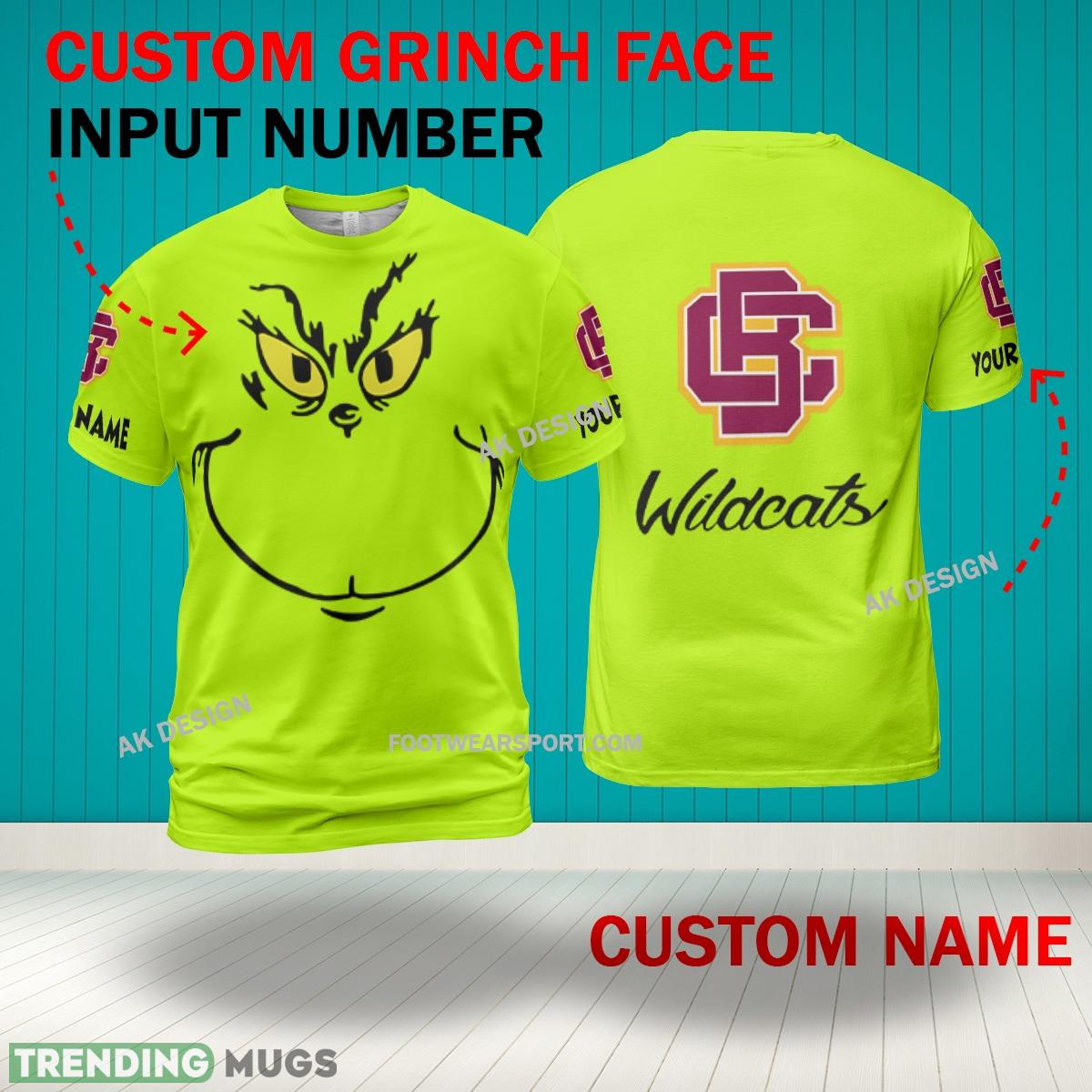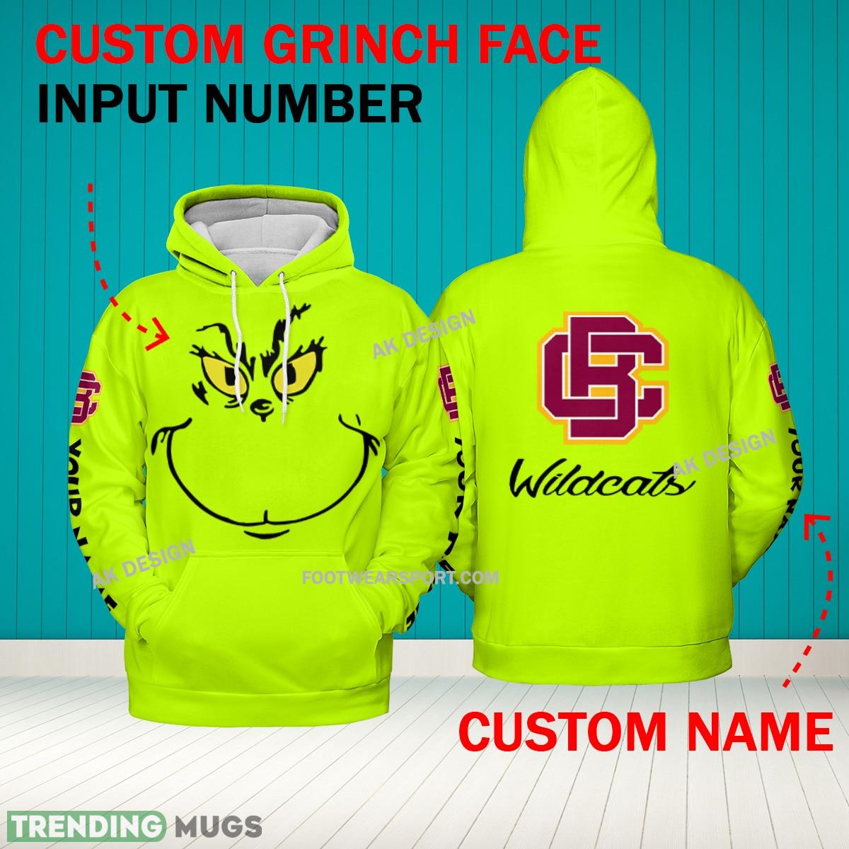 Some of the Grinch Face Bethune Cookman Wildcats 3D Hoodie, Zip Hoodie, Sweater Green AOP Custom Number And Name photos