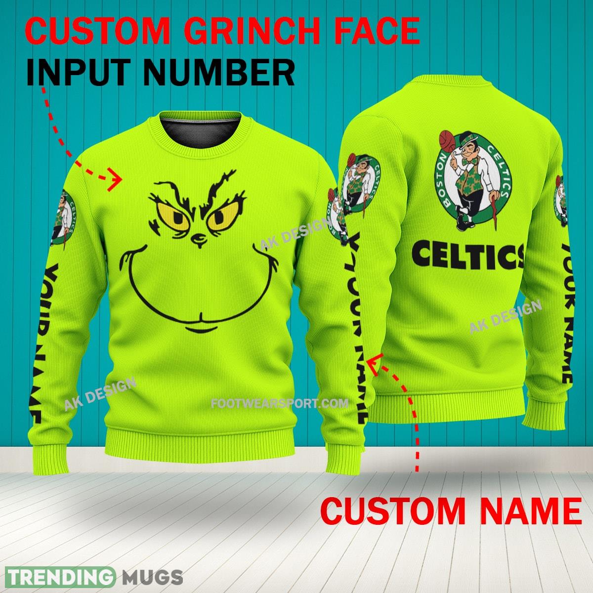 Grinch Face Boston Celtics 3D Hoodie, Zip Hoodie, Sweater Green AOP Custom Number And Name Information