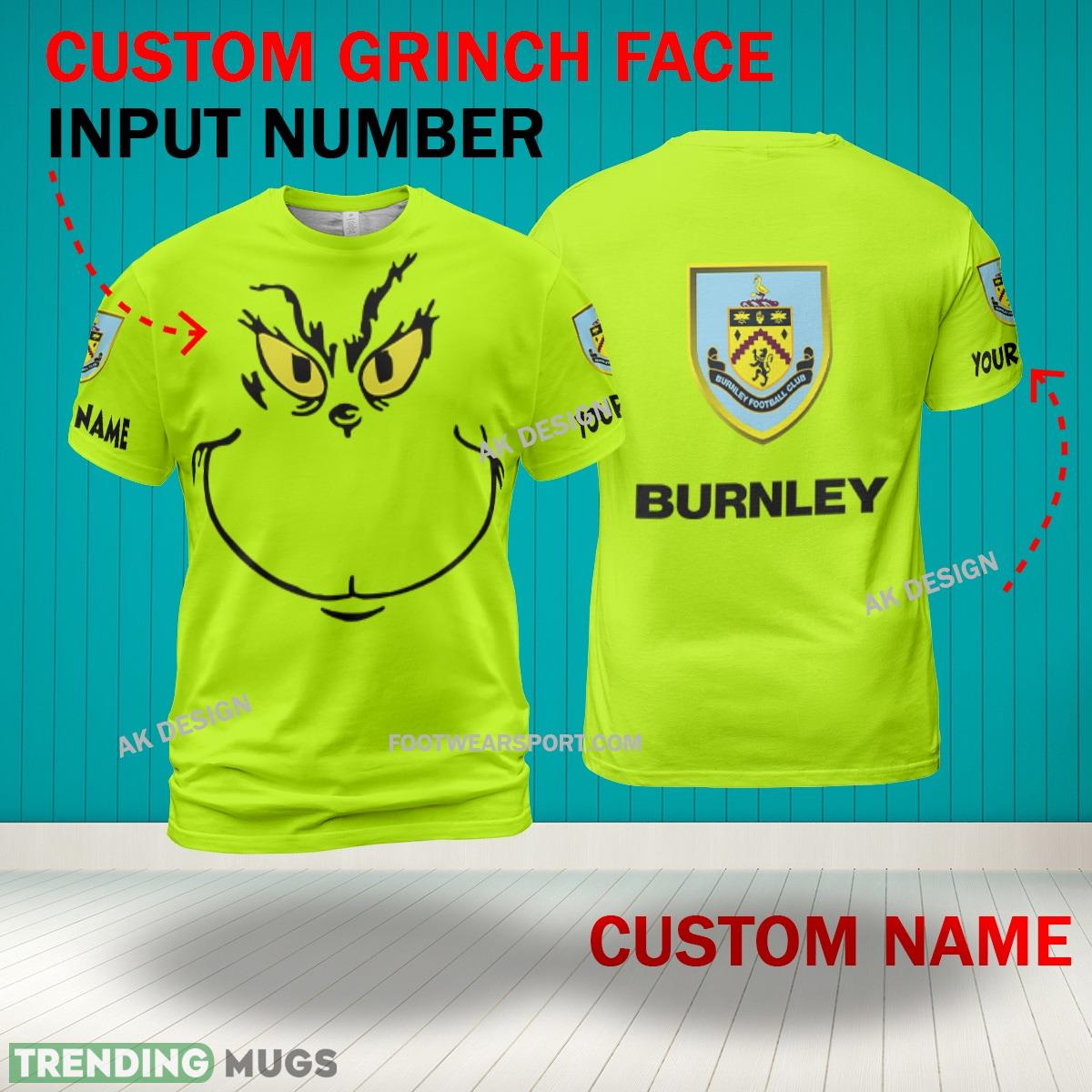Grinch Face Burnley 3D Hoodie, Zip Hoodie, Sweater Green AOP Custom Number And Name – Grinch Face EPL Burnley 3D Shirt
