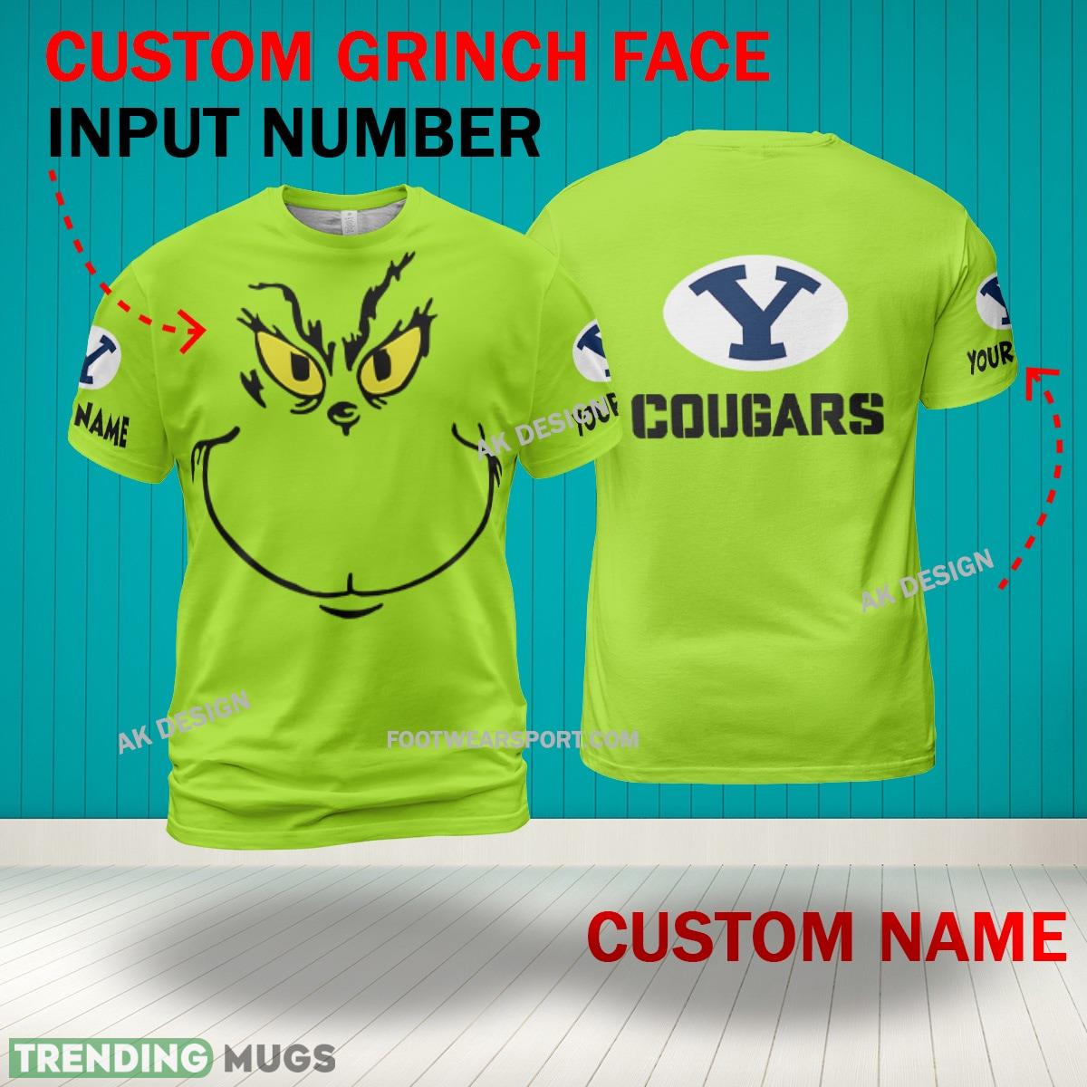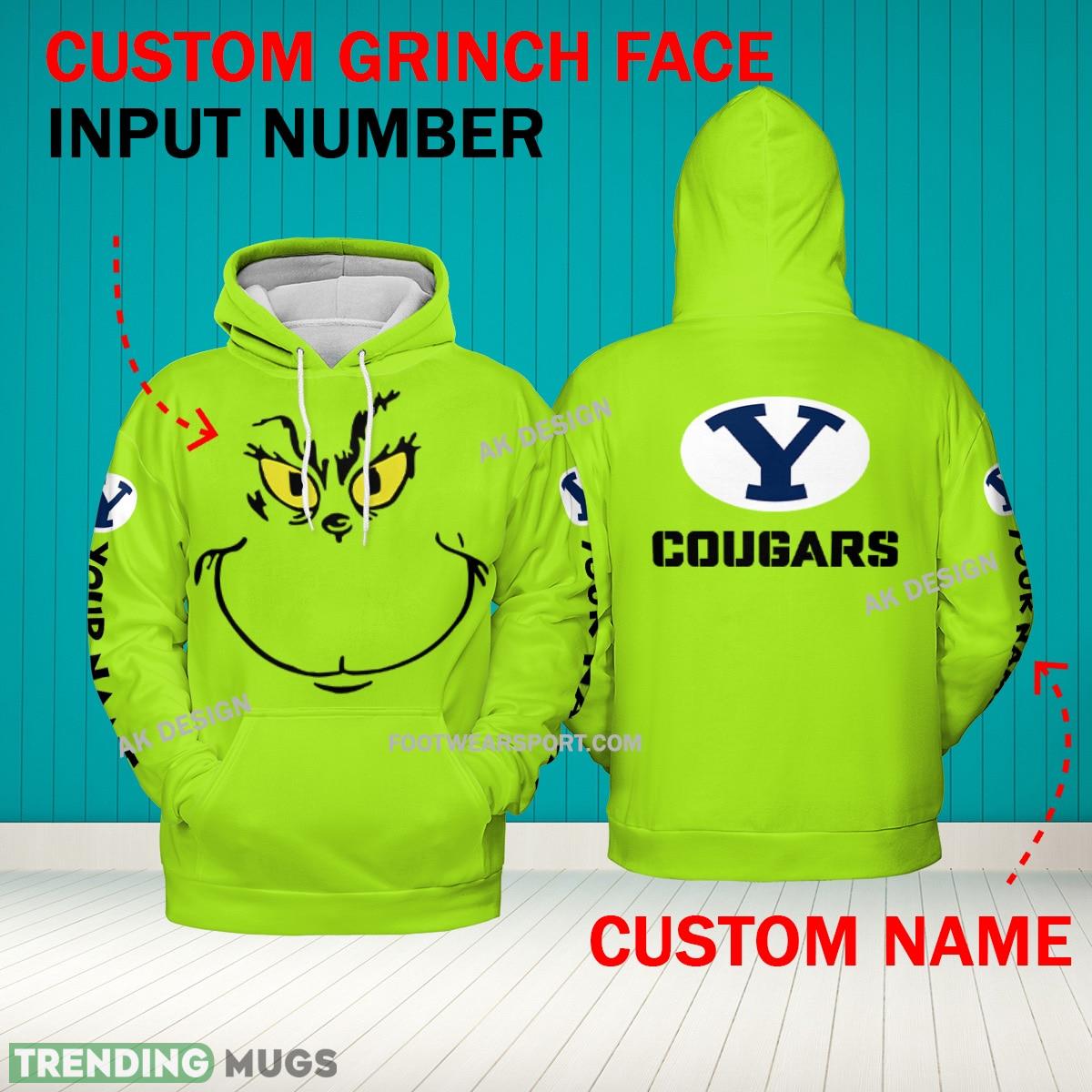 Some of the Grinch Face BYU Cougars 3D Hoodie, Zip Hoodie, Sweater Green AOP Custom Number And Name photos