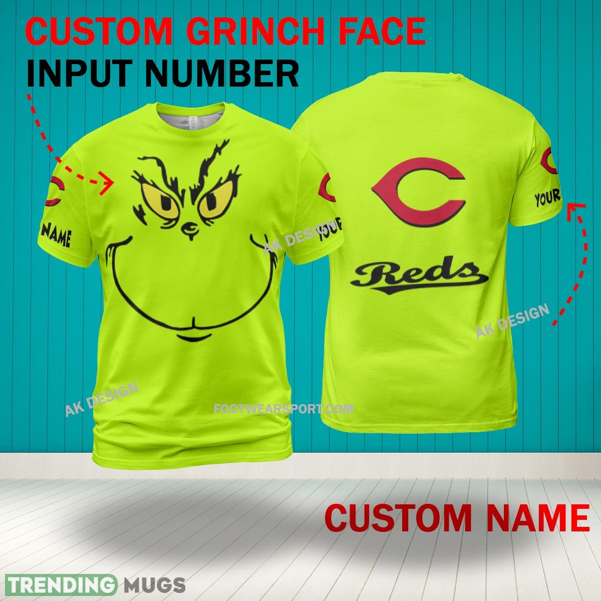 Grinch Face Cincinnati Reds 3D Hoodie, Zip Hoodie, Sweater Green AOP Custom Number And Name – Grinch Face MLB Cincinnati Reds 3D Shirt