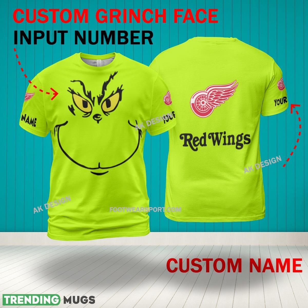 Some of the Grinch Face Detroit Red Wings 3D Hoodie, Zip Hoodie, Sweater Green AOP Custom Number And Name photos