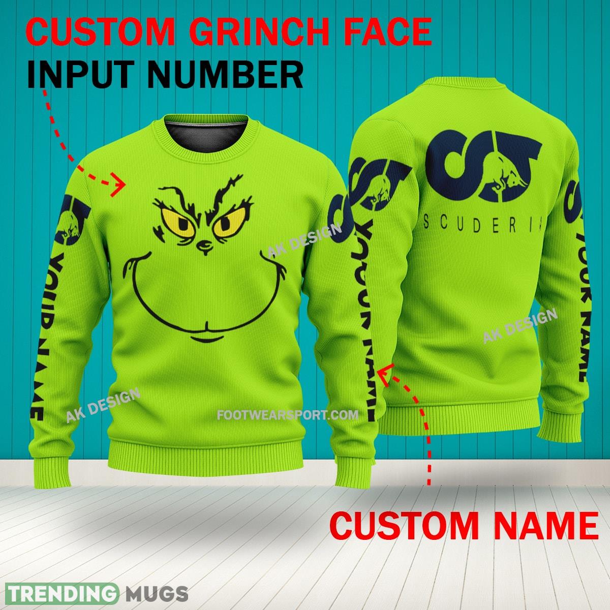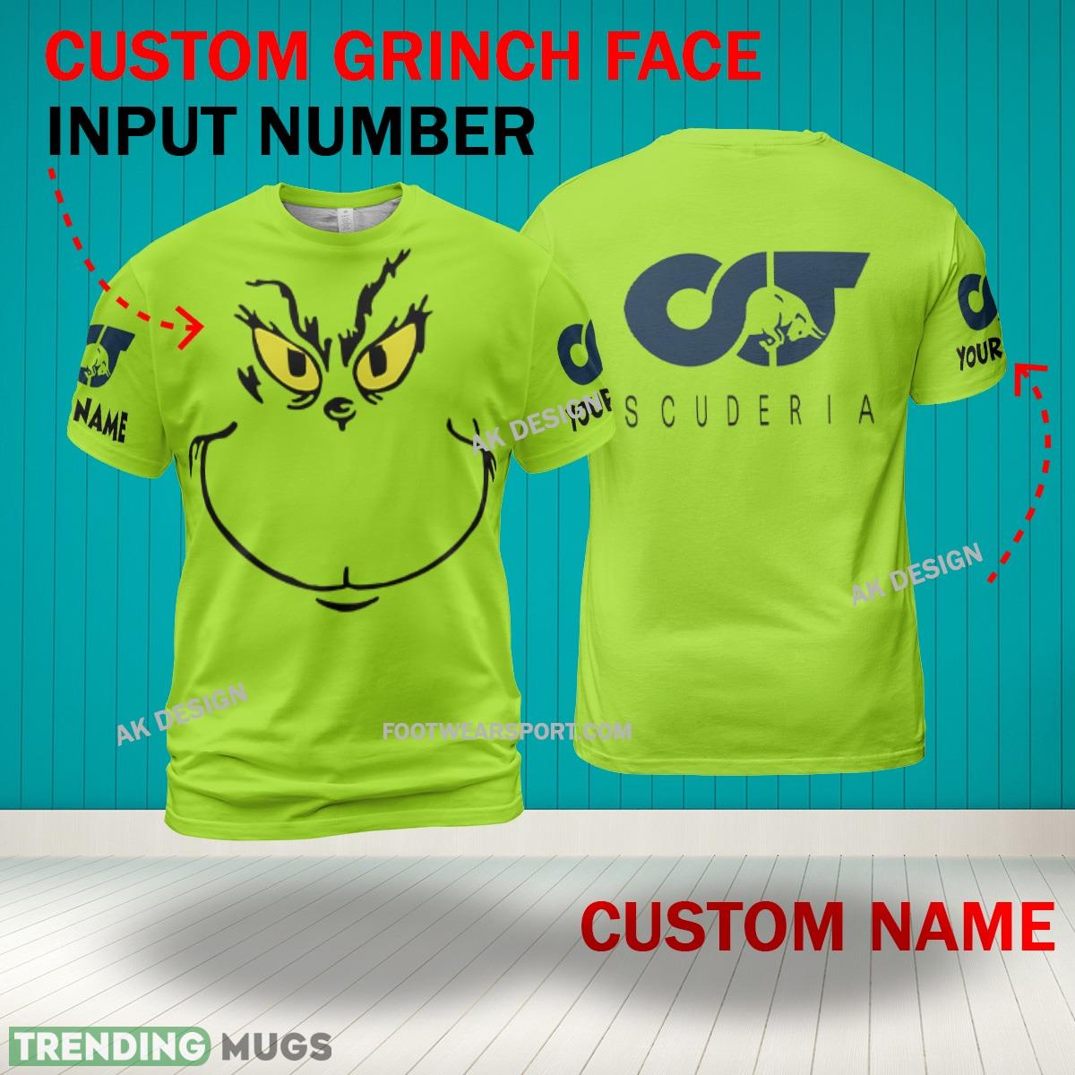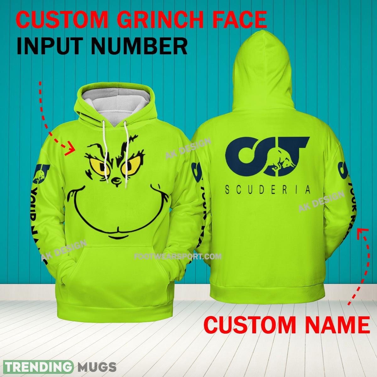 Grinch Face F1 Racing Scuderia AlphaTauri RB 3D Hoodie, Zip Hoodie, Sweater Green AOP Custom Number And Name – Grinch Face F1 Racing Scuderia AlphaTauri RB 3D Sweater