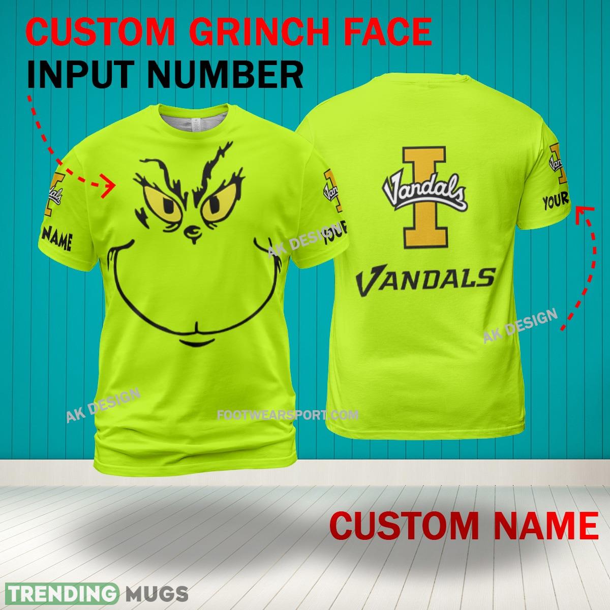 Grinch Face Idaho Vandals 3D Hoodie, Zip Hoodie, Sweater Green AOP Custom Number And Name – Grinch Face NCAA2 Idaho Vandals 3D Shirt
