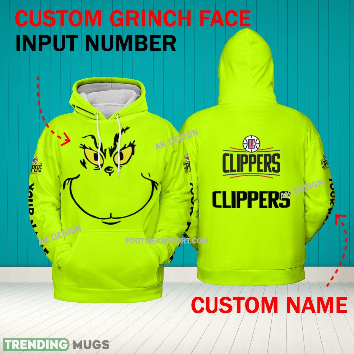 Grinch Face Los Angeles Clippers 3D Hoodie, Zip Hoodie, Sweater Green AOP Custom Number And Name – Grinch Face NBA Los Angeles Clippers 3D Hoodie