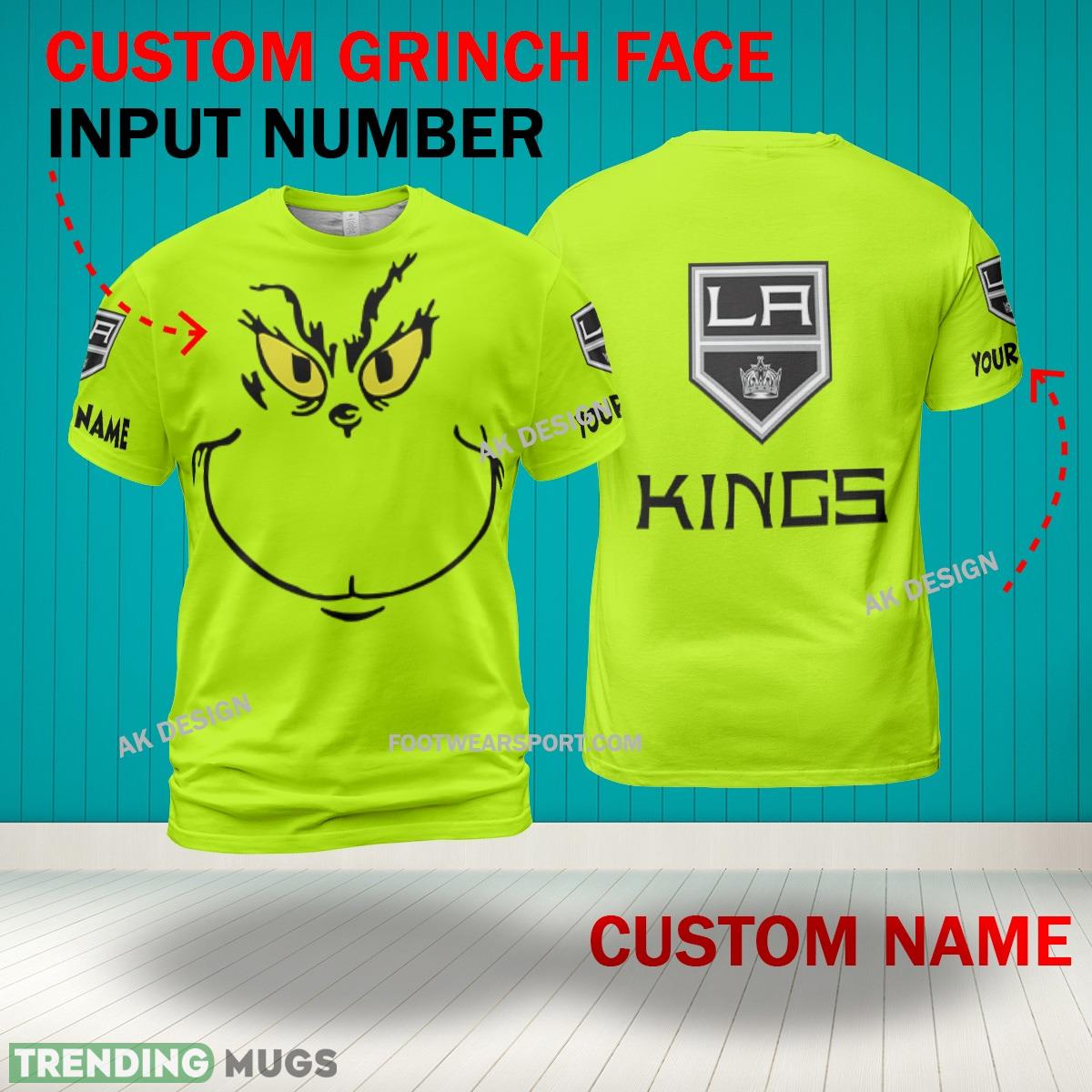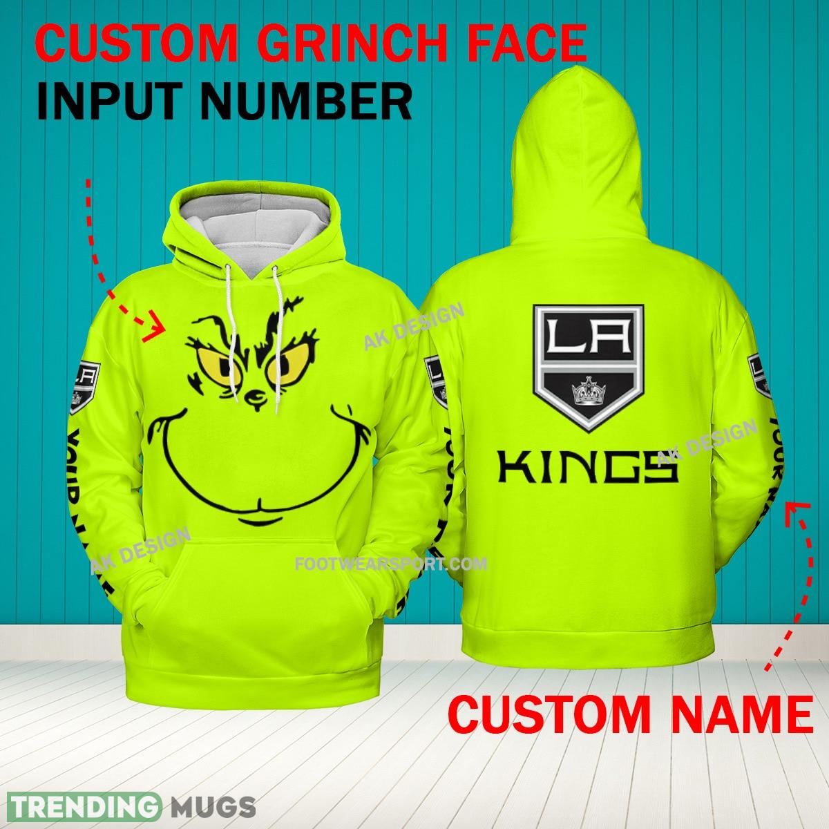 Grinch Face Los Angeles Kings 3D Hoodie, Zip Hoodie, Sweater Green AOP Custom Number And Name – Grinch Face NHL Los Angeles Kings Custom Face 1