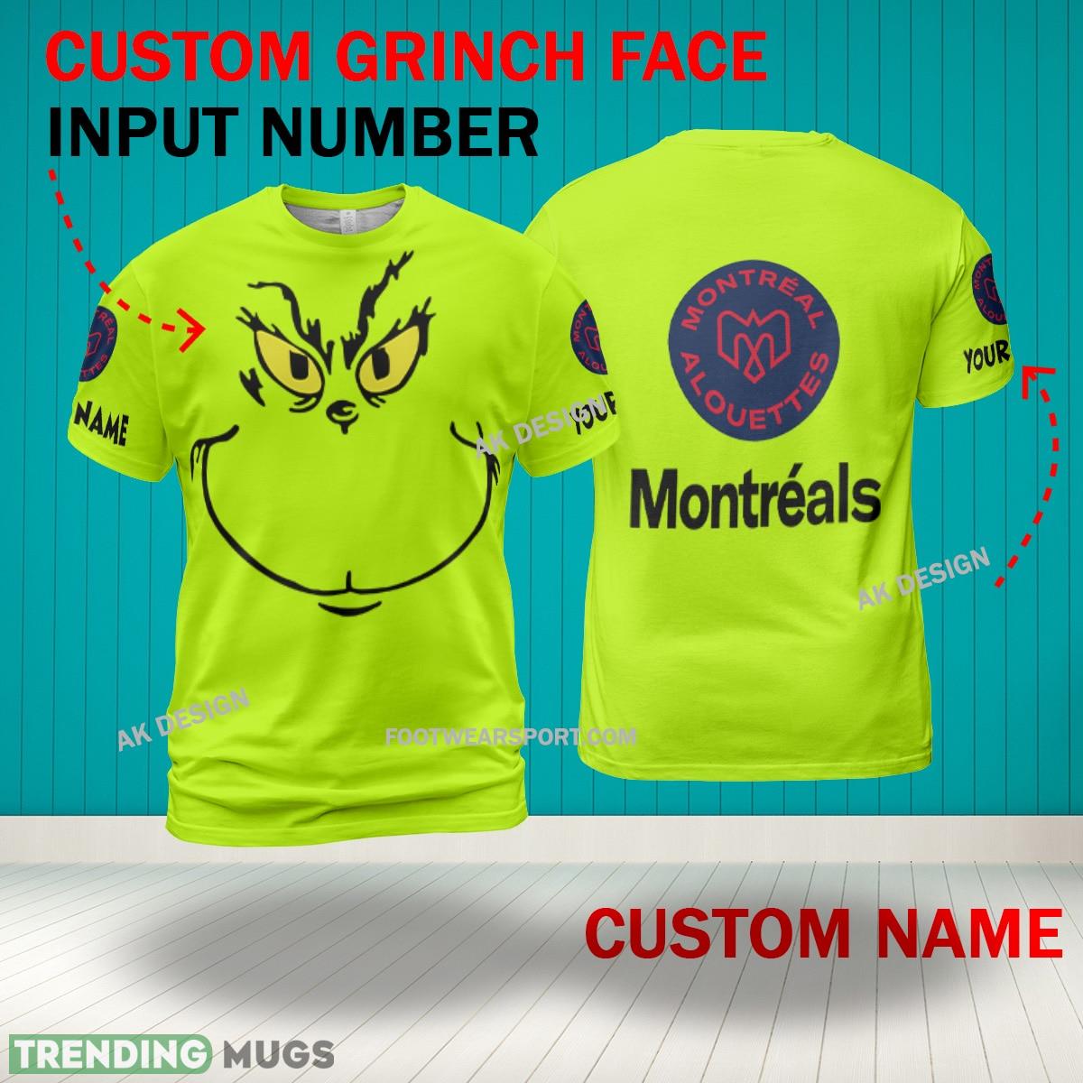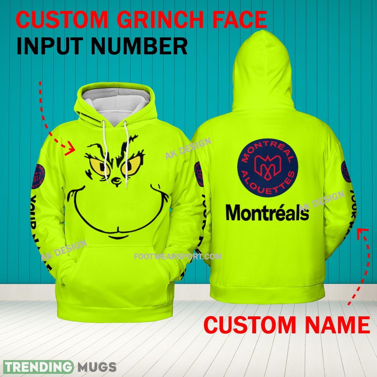 Some of the Grinch Face Montreal Alouettes 3D Hoodie, Zip Hoodie, Sweater Green AOP Custom Number And Name photos