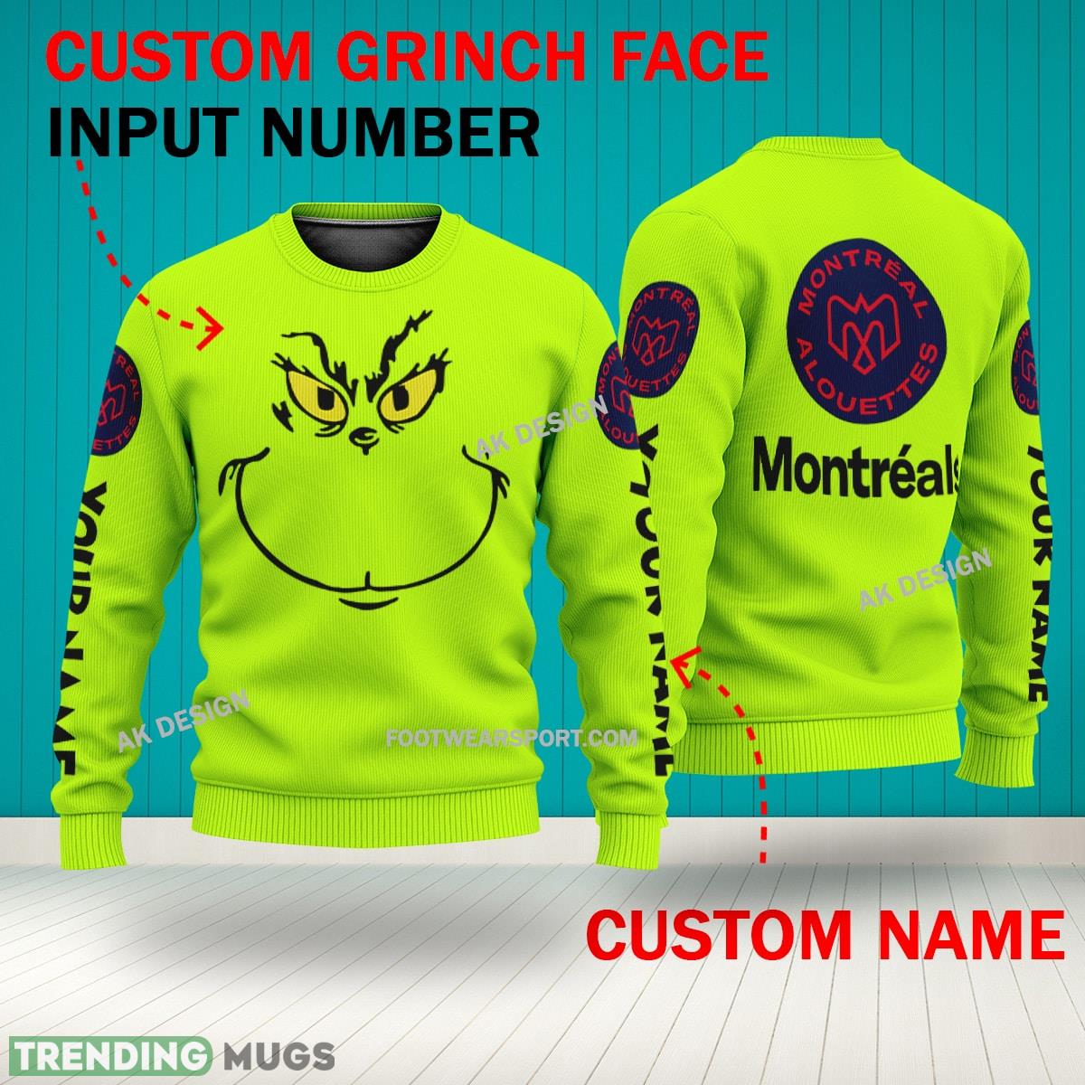 Be the first to review “Grinch Face Montreal Alouettes 3D Hoodie, Zip Hoodie, Sweater Green AOP Custom Number And Name”