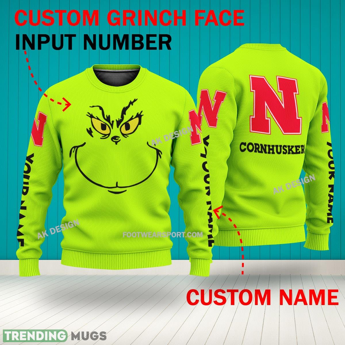 Get into the holiday spirit with our Grinch Face Nebraska Cornhuskers 3D Hoodie! This unique zip hoodie features a festive green all-over print design with a customizable number and name, making it the perfect personalized gift for any Cornhuskers fan. Stay cozy and stylish while showing off your team spirit with this one-of-a-kind sweater. Don’t be a Grinch, grab yours today!