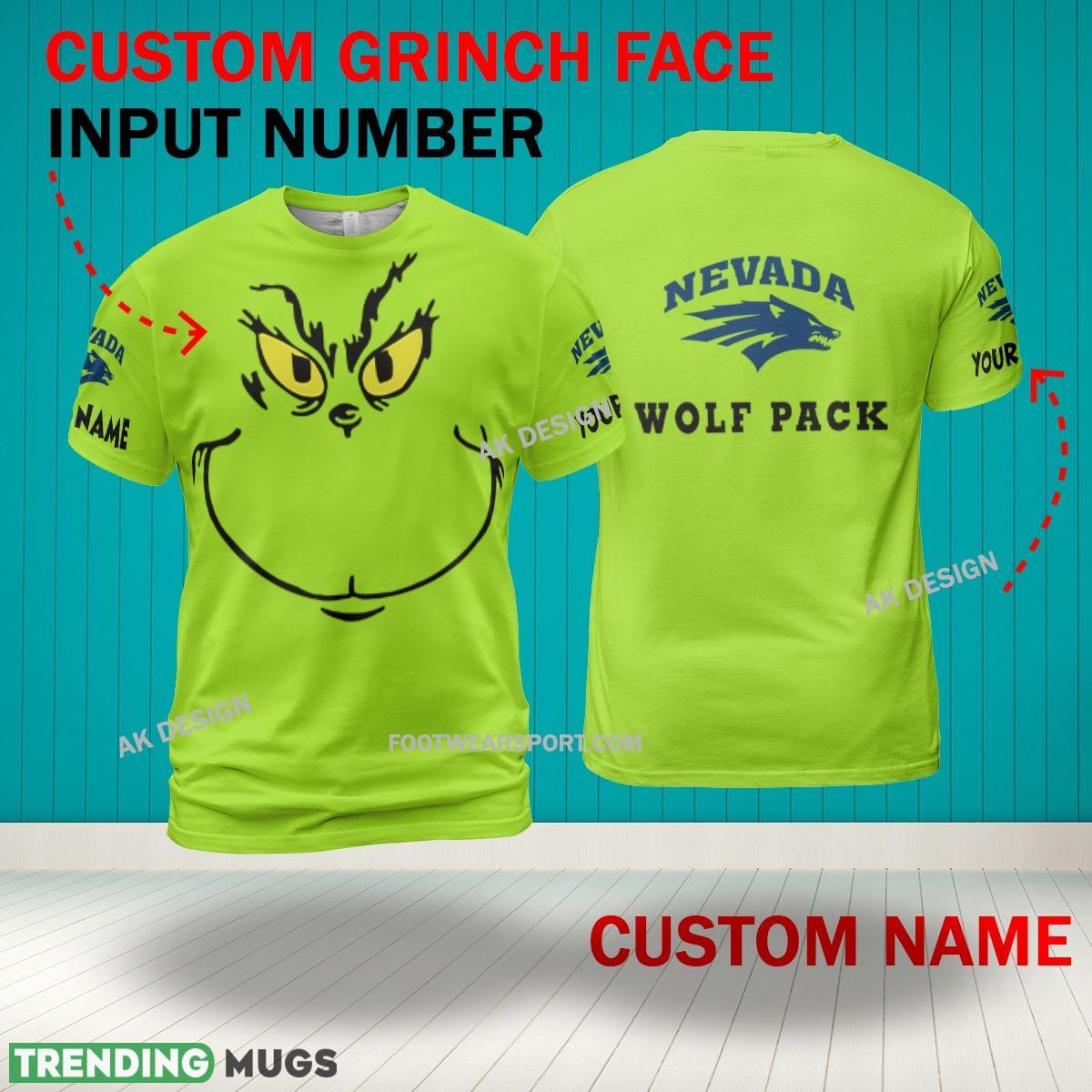 Some of the Grinch Face Nevada Wolf Pack 3D Hoodie, Zip Hoodie, Sweater Green AOP Custom Number And Name photos