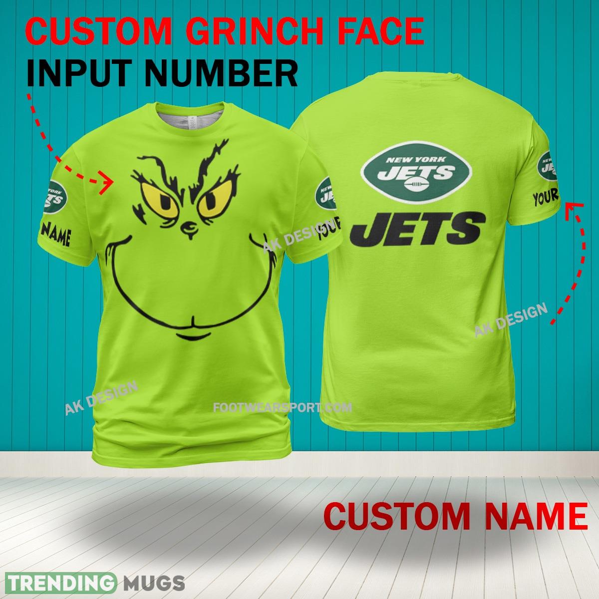 Grinch Face New York Jets 3D Hoodie, Zip Hoodie, Sweater Green AOP Custom Number And Name – Grinch Face NFL New York Jets Custom Face 1