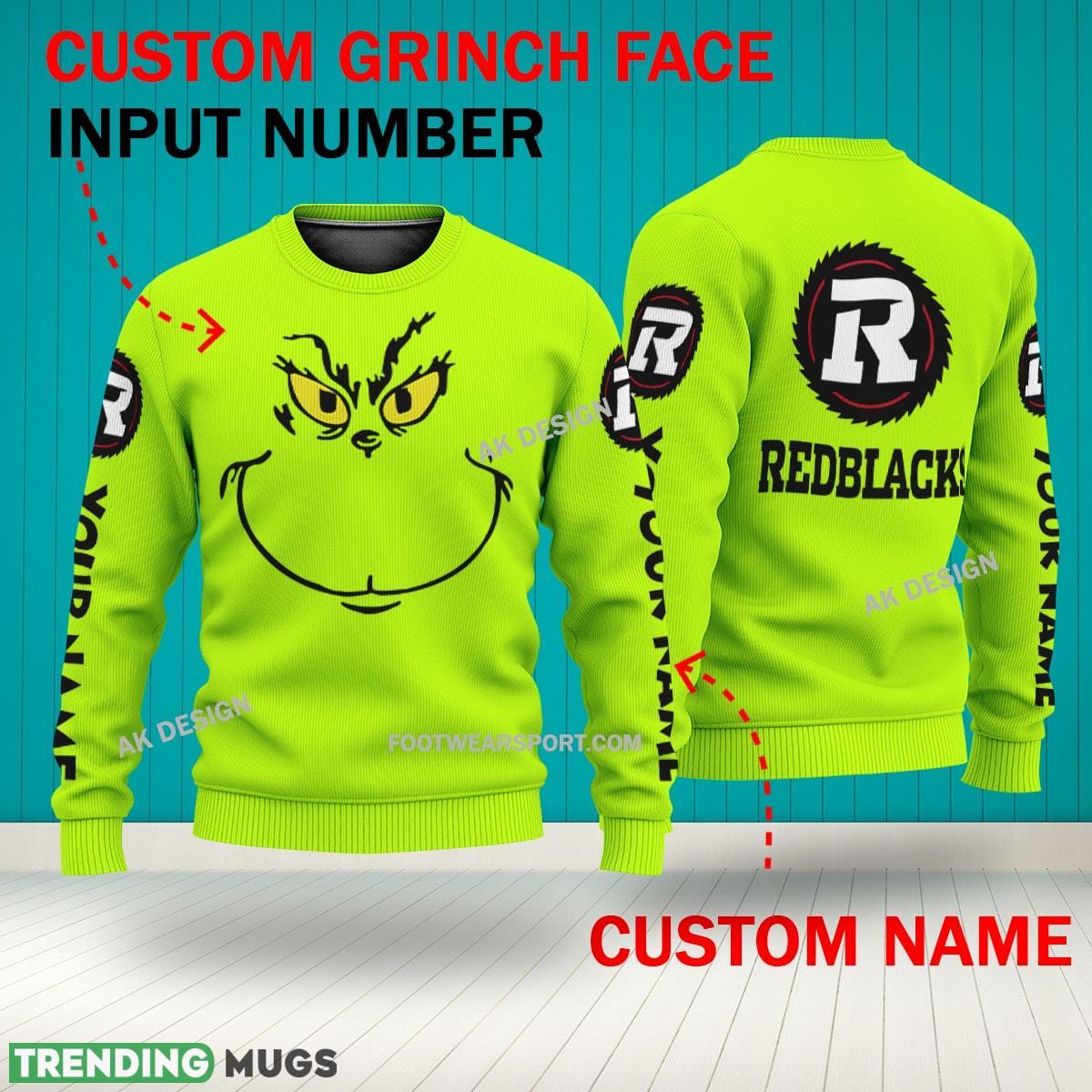 Grinch Face Ottawa RedBlacks 3D Hoodie, Zip Hoodie, Sweater Green AOP Custom Number And Name – Grinch Face CFL Ottawa RedBlacks Custom Face 1