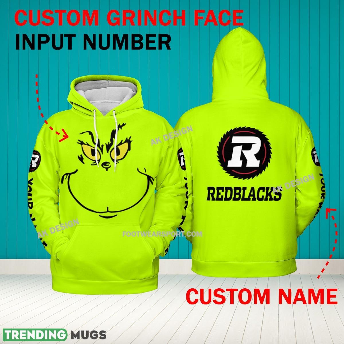 Grinch Face Ottawa RedBlacks 3D Hoodie, Zip Hoodie, Sweater Green AOP Custom Number And Name – Grinch Face CFL Ottawa RedBlacks 3D Hoodie
