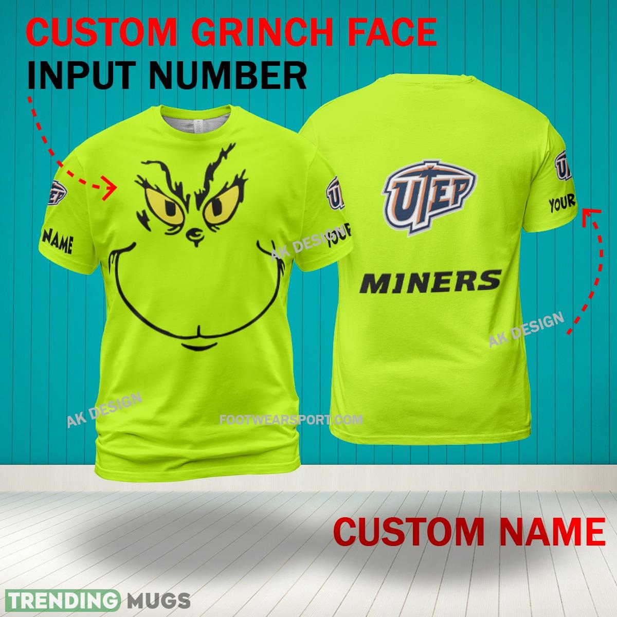 Some of the Grinch Face UTEP Miners 3D Hoodie, Zip Hoodie, Sweater Green AOP Custom Number And Name photos