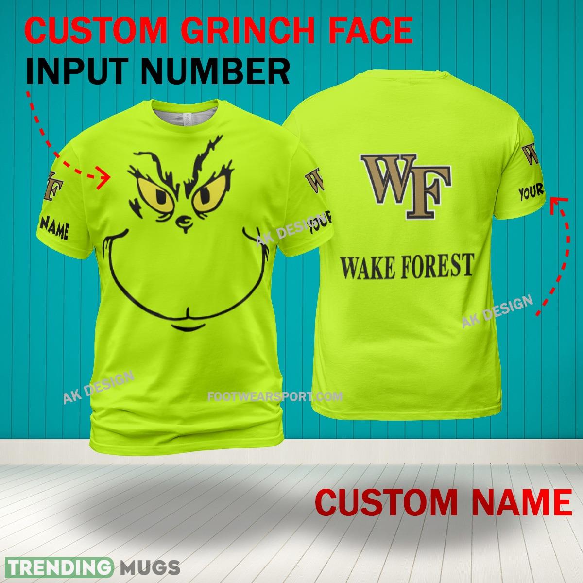 Grinch Face Wake Forest Demon Deacons 3D Hoodie, Zip Hoodie, Sweater Green AOP Custom Number And Name Information