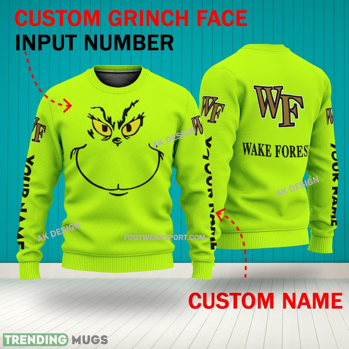 Grinch Face Wake Forest Demon Deacons 3D Hoodie, Zip Hoodie, Sweater Green AOP Custom Number And Name – Grinch Face NCAA Wake Forest Demon Deacons Custom Face 1
