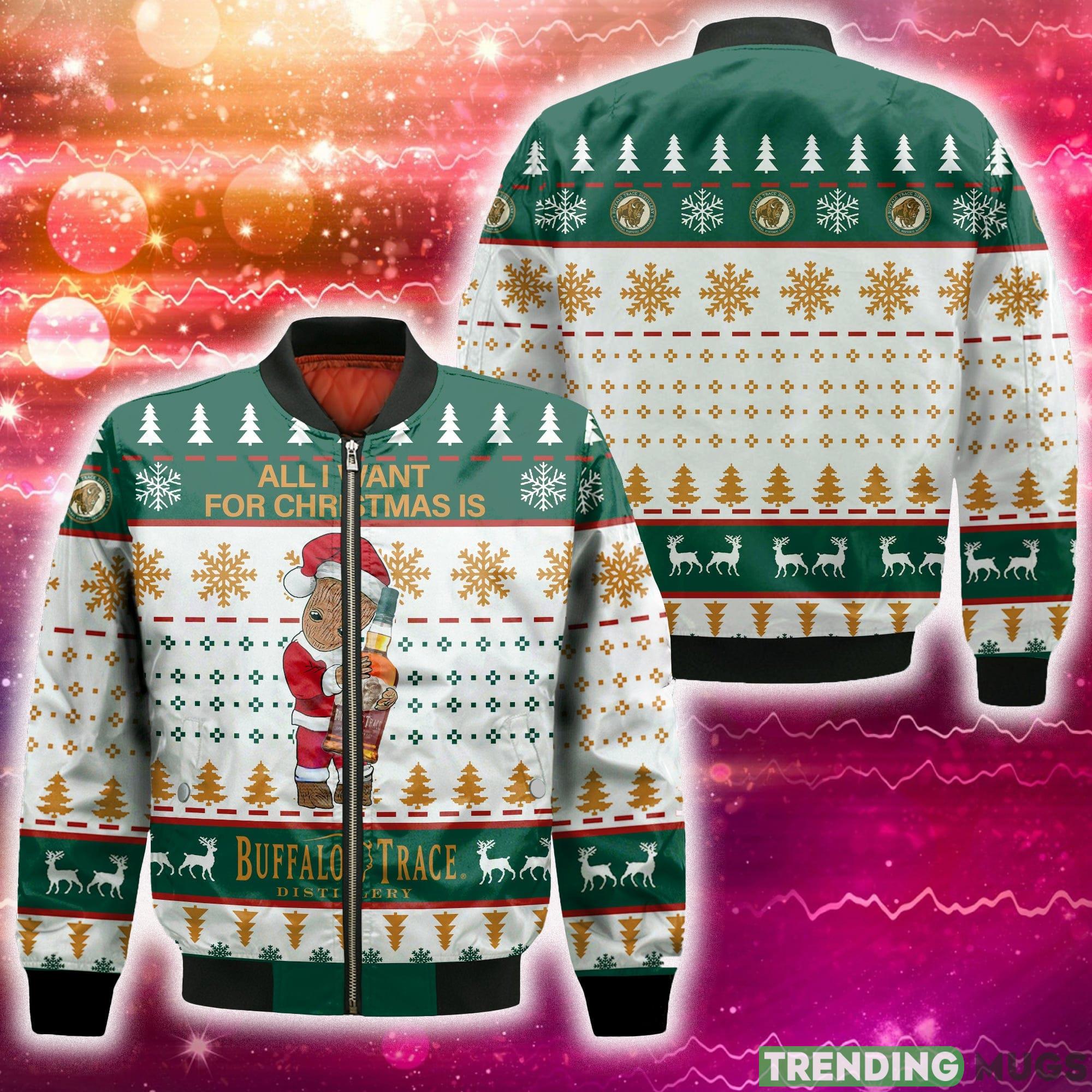 Groot All I Need For Christmas Is Buffalo Trace 3D Bomber AOP For Men And Women Gift Christmas Material Information