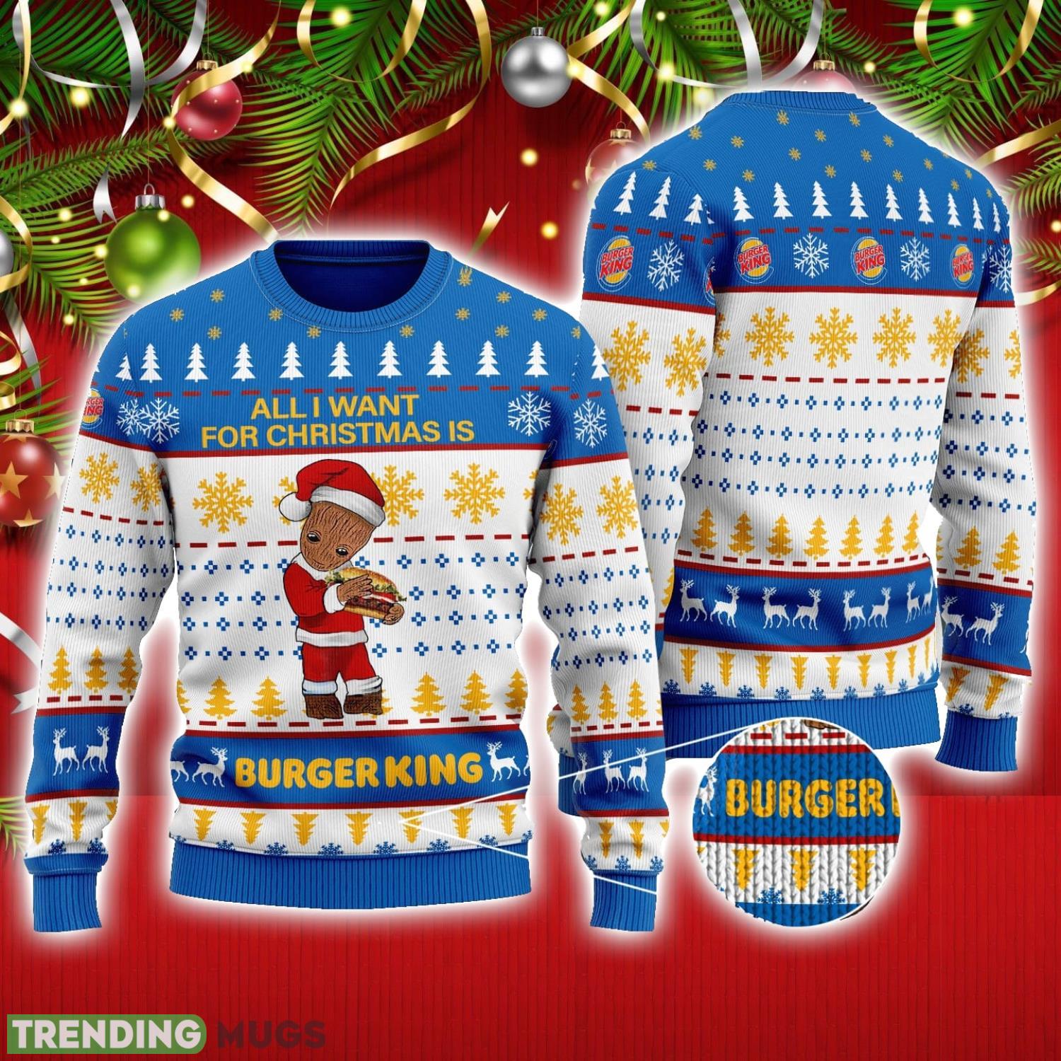 Groot All I Need For Christmas Is Burger King Ugly Christmas Sweater Cute Christmas Gift Ideas Informations: