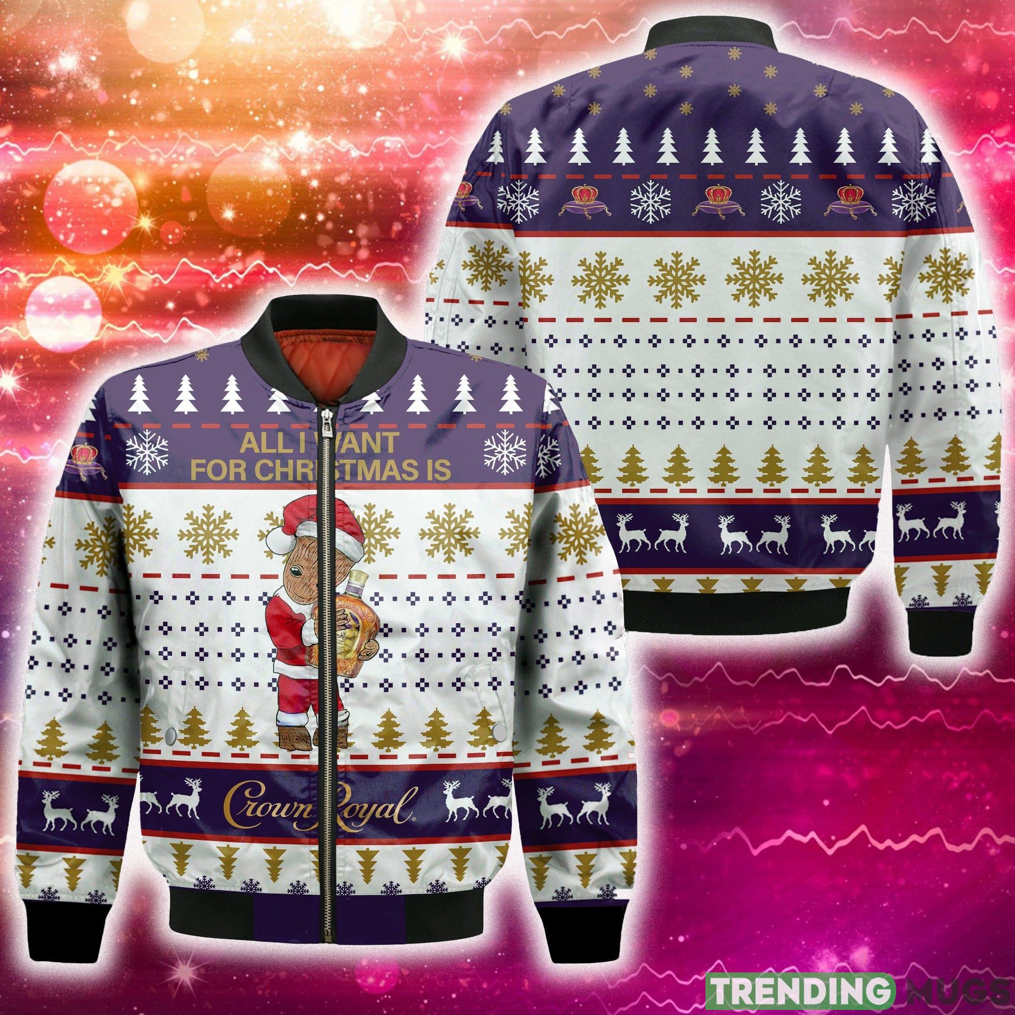 Groot All I Need For Christmas Is Crown Royal Whisky 3D Bomber AOP For Men And Women Gift Christmas Material Information