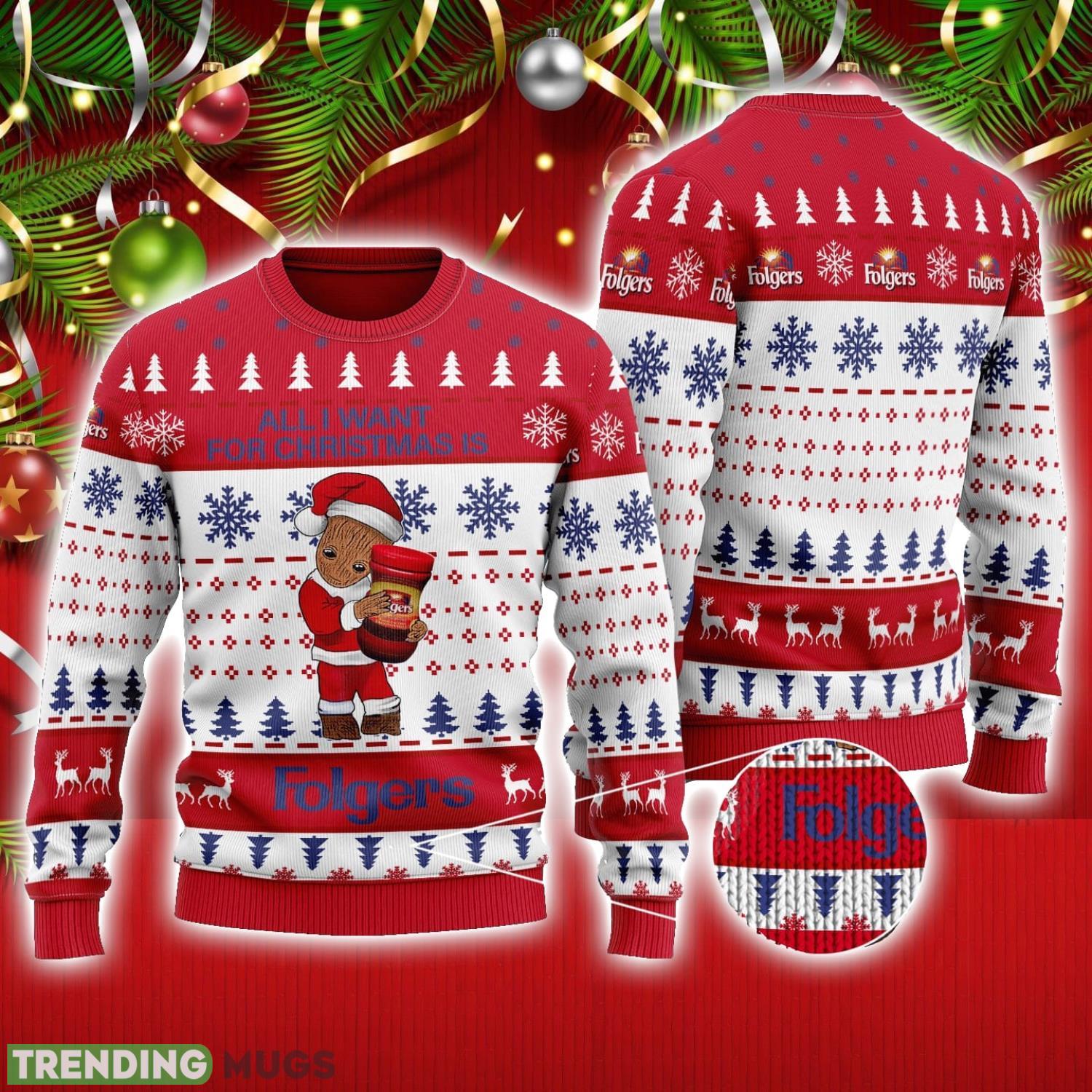 Groot All I Need For Christmas Is Folgers Ugly Christmas Sweater Cute Christmas Gift Ideas Product Photo 1