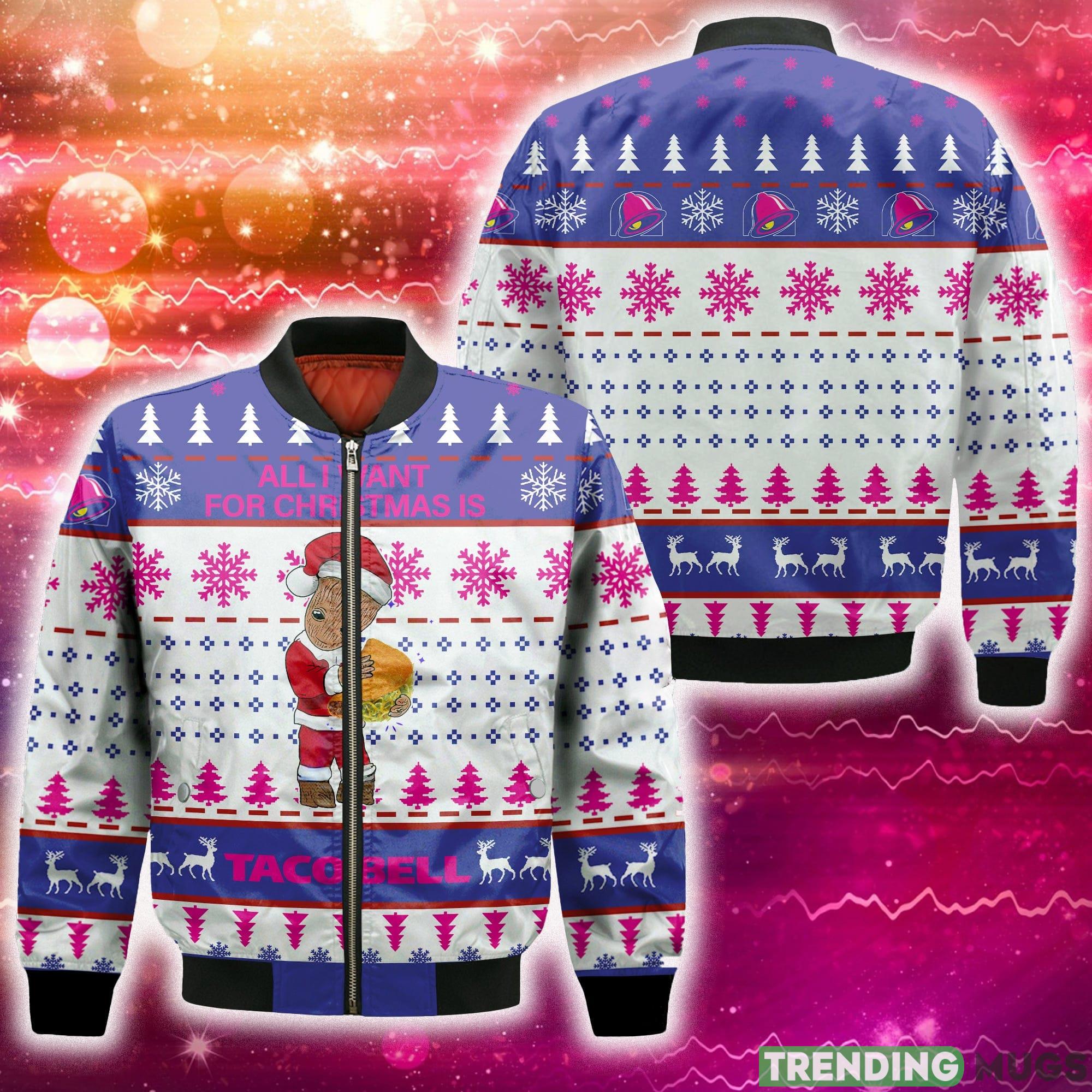 Groot All I Need For Christmas Is Taco Bell 3D Bomber AOP For Men And Women Gift Christmas Material Information