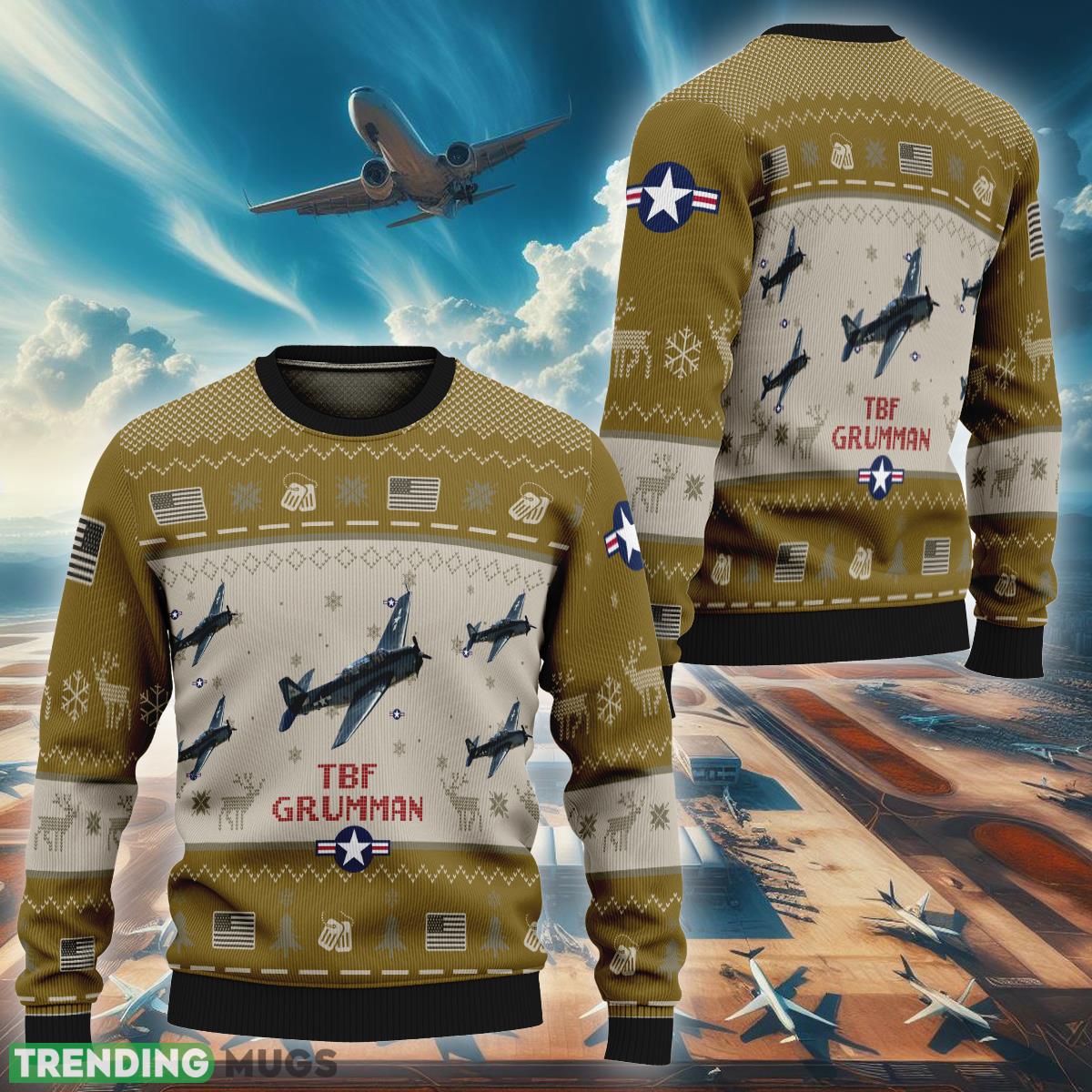 Grumman TBF Aircraft TBF Ugly Christmas Sweater AOP Design Brown Air Force Informations: