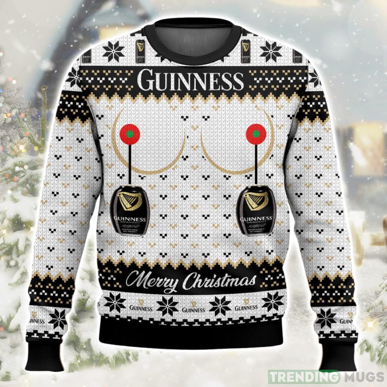 Get ready to spread laughter and joy this Christmas season with our hilarious Guinness Titties Funny Christmas Ugly Sweater! This special gift for Xmas is guaranteed to make heads turn and bring smiles to faces at any holiday gathering.