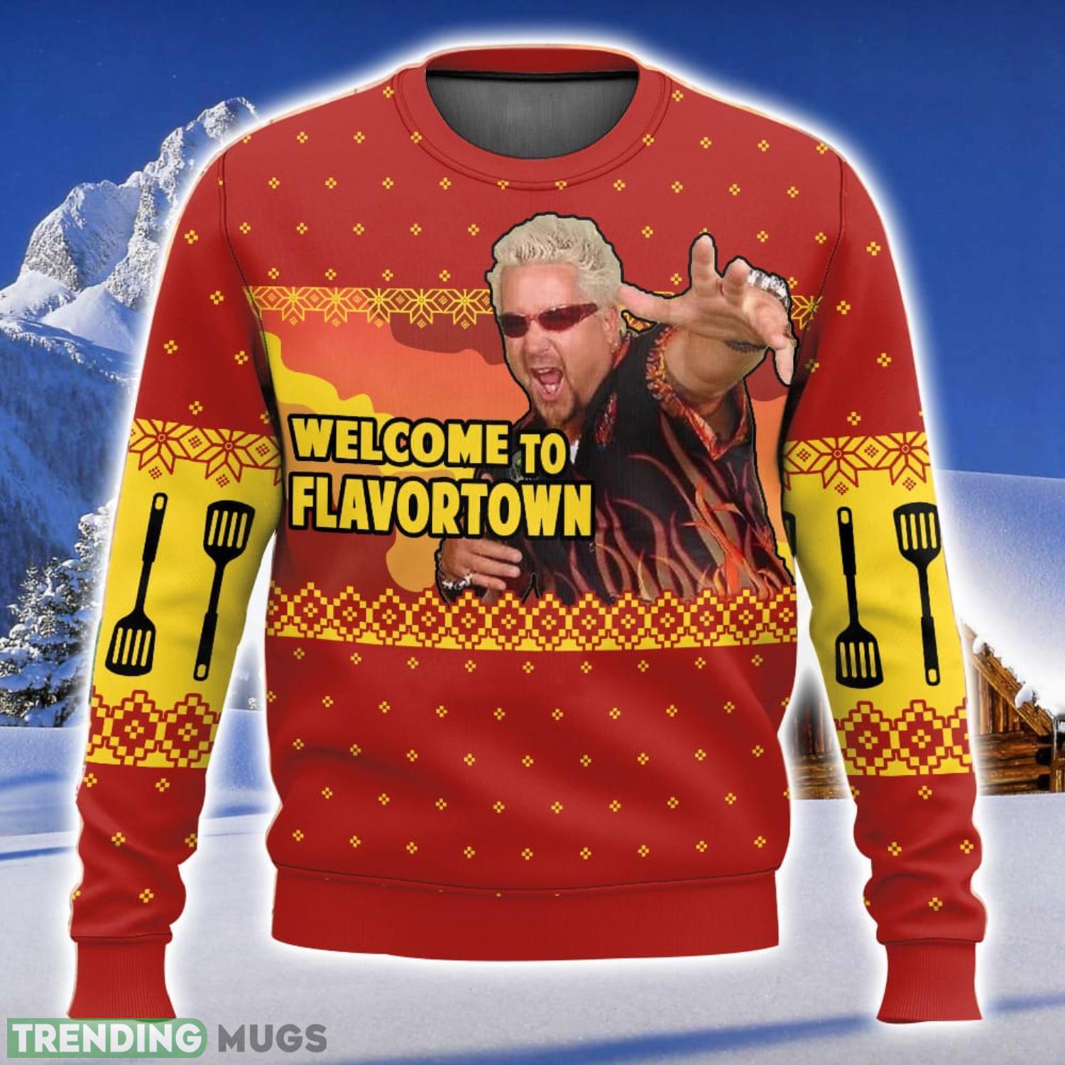 Guy Fieri Welcome To Flavortown Nice Gift Ugly Christmas Sweater Unique Christmas Gift For Men And Women