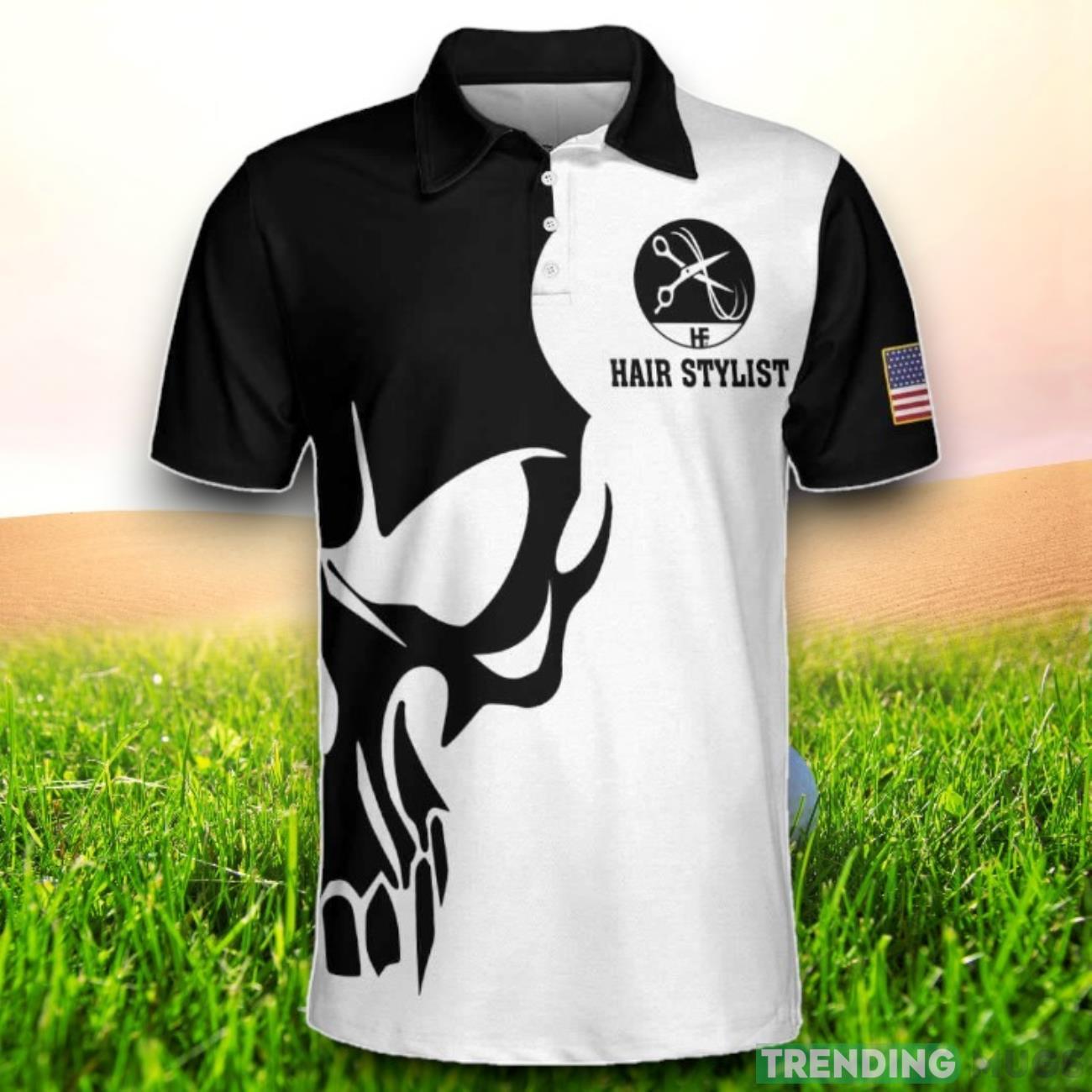 Some of the Hair Stylist Proud Skull Short Sleeve Polo Shirt Skull Polo Shirt photos