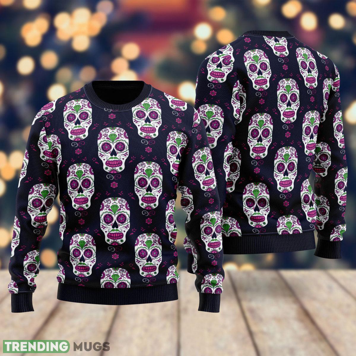 Made from premium quality materials, this sweater features a striking black skull design that is sure to turn heads at any holiday gathering. The intricate details and vibrant colors bring the skull to life, creating a truly one-of-a-kind look.