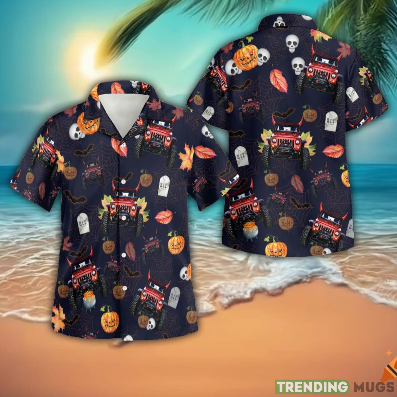 Halloween Jeep And Pumpkin 3D Button Hawaiian Shirt Men And Women Aloha Summer Beach Gift Product Photo 1