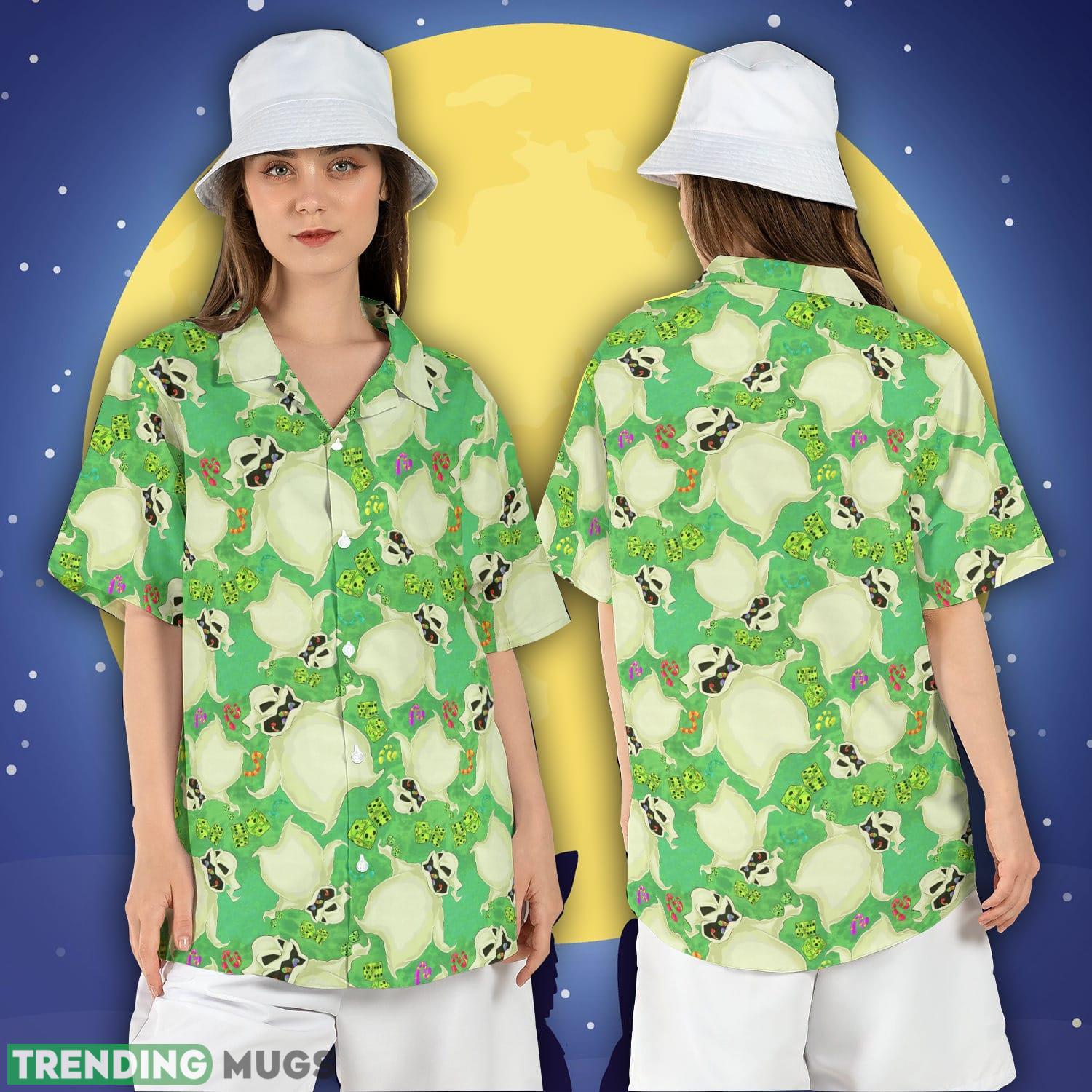 Crafted with meticulous attention to detail, this button shirt features a striking print of Oogie Boogie himself, surrounded by tropical Hawaiian motifs. The fusion of Halloween and Hawaiian vibes creates an irresistibly fun and eye-catching design that is sure to turn heads at any Halloween party or event.