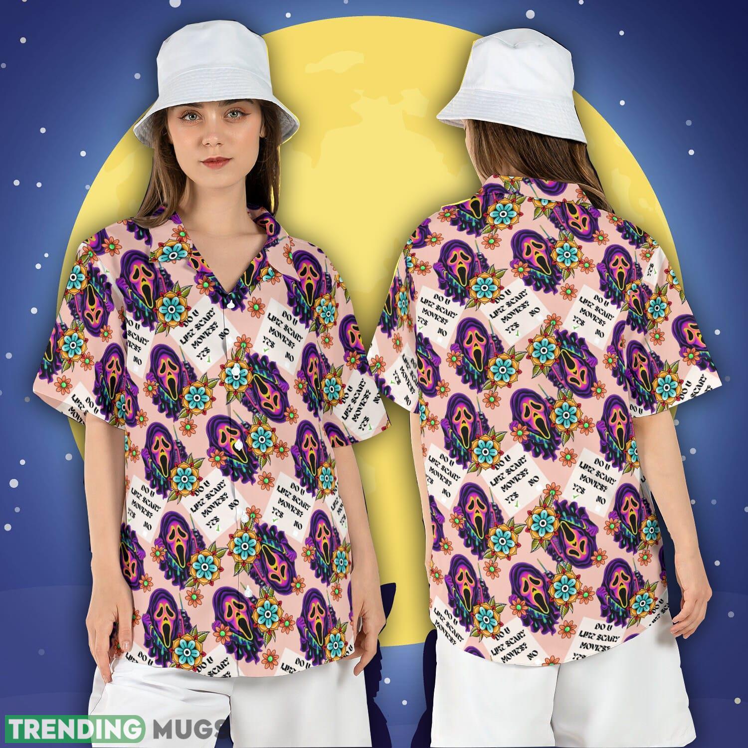 Halloween Scream Ghost Face Hawaiian Shirt Scary Movies Button Shirt Floral Ghostface Aloha Shirt Details:
