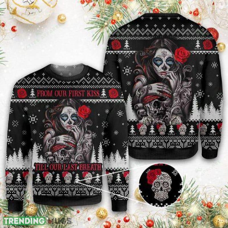 Halloween Skull From Our First Kiss Till Our Last Breath Ugly Christmas Sweater Gift For Men Women Informations: