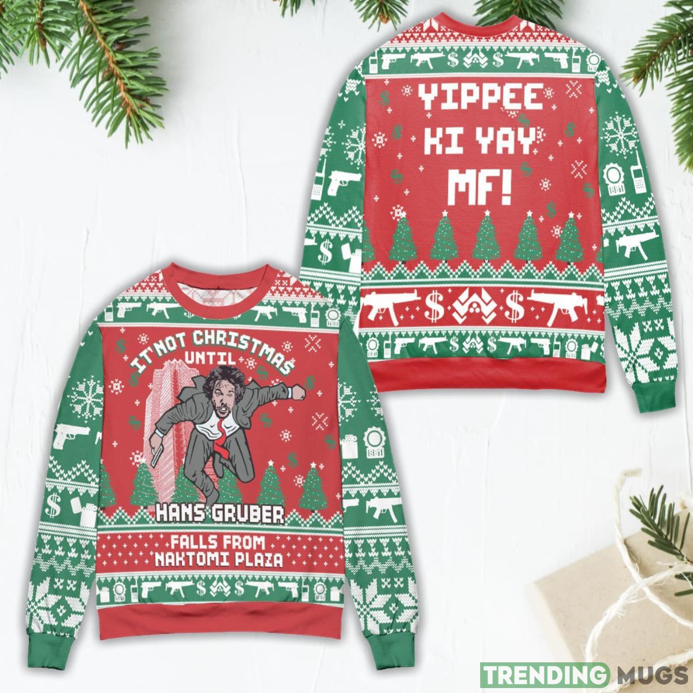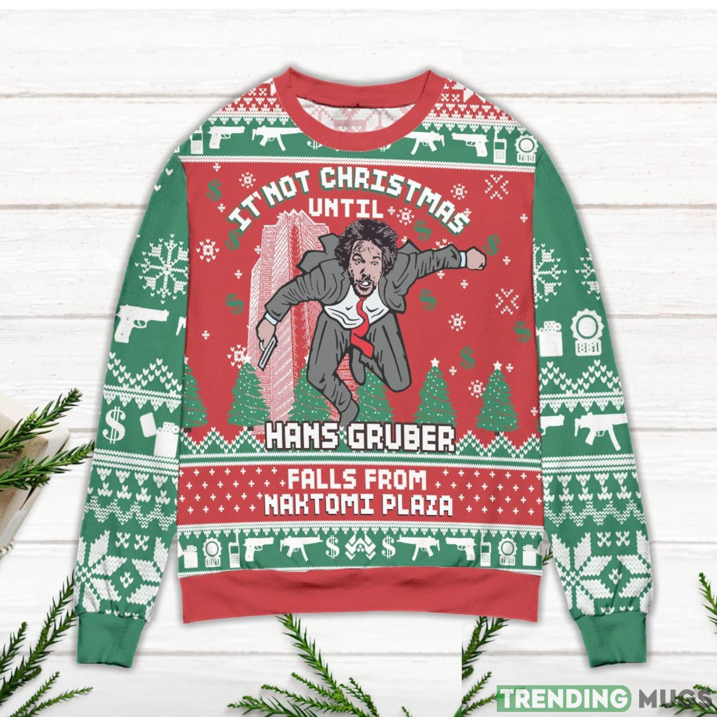 Hans Gruber Falls From Naktomi Plaza Die Hard Snowflake Pattern Ugly Christmas Sweater Green Informations: