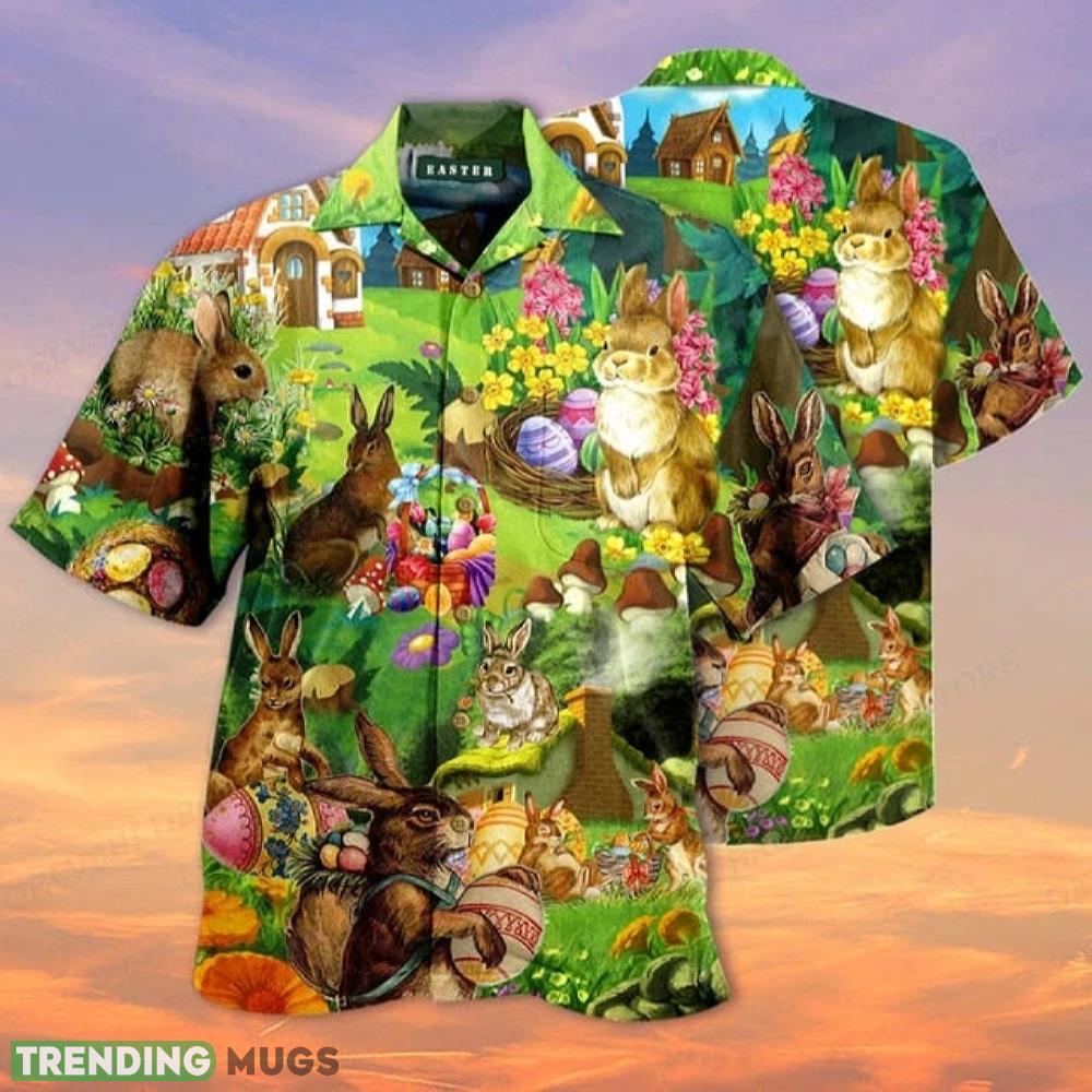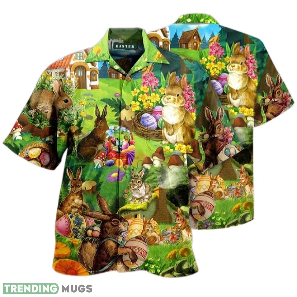 Happy Easter Bunny On Garden Green Hawaiian Shirt Aloha Shirt For Men And Women Details: