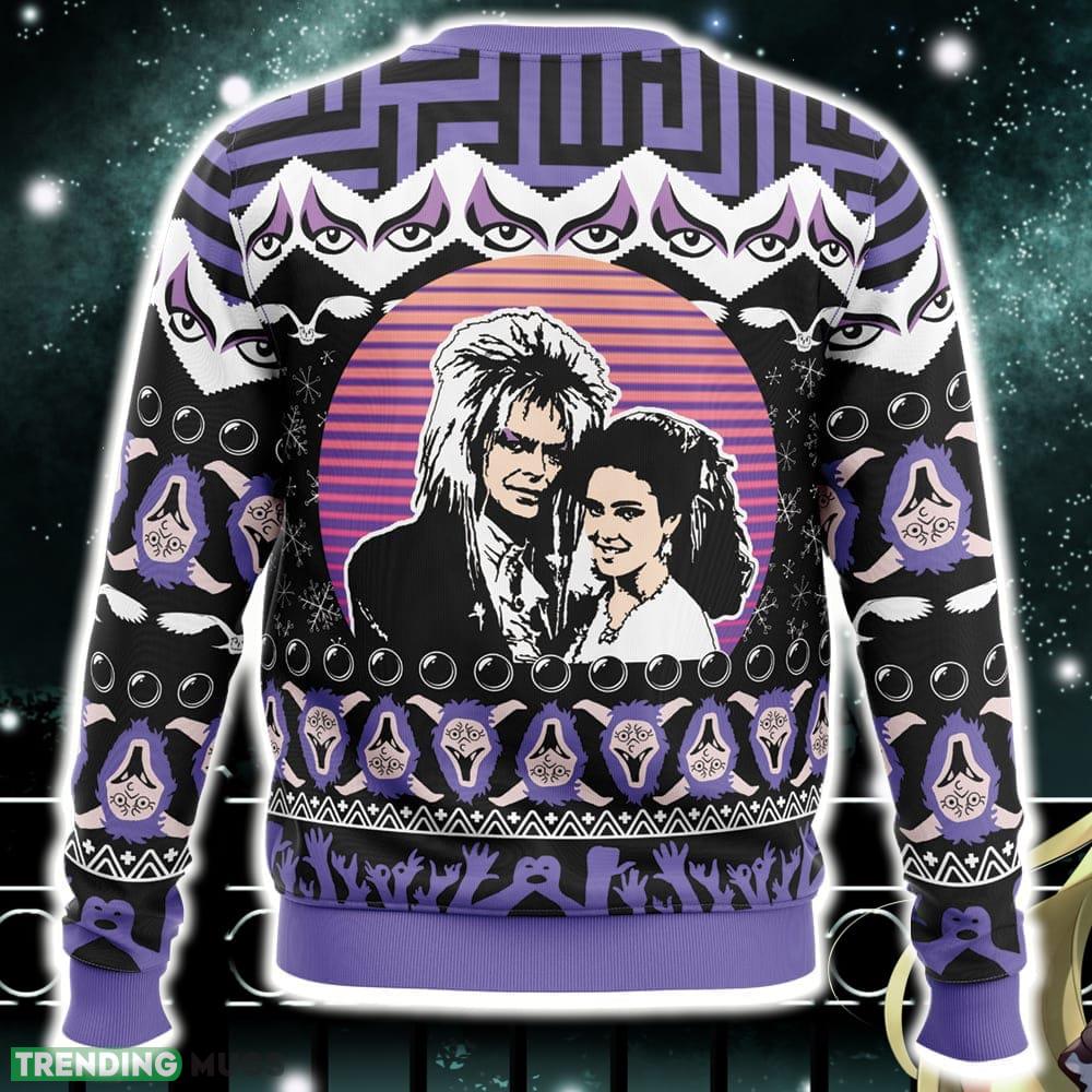 Featuring a unique design inspired by the beloved movie Labyrinth, this sweater is guaranteed to turn heads and spark conversations at any holiday gathering. The intricate labyrinth pattern, adorned with quirky characters and festive elements, adds a touch of whimsy to your Christmas wardrobe.